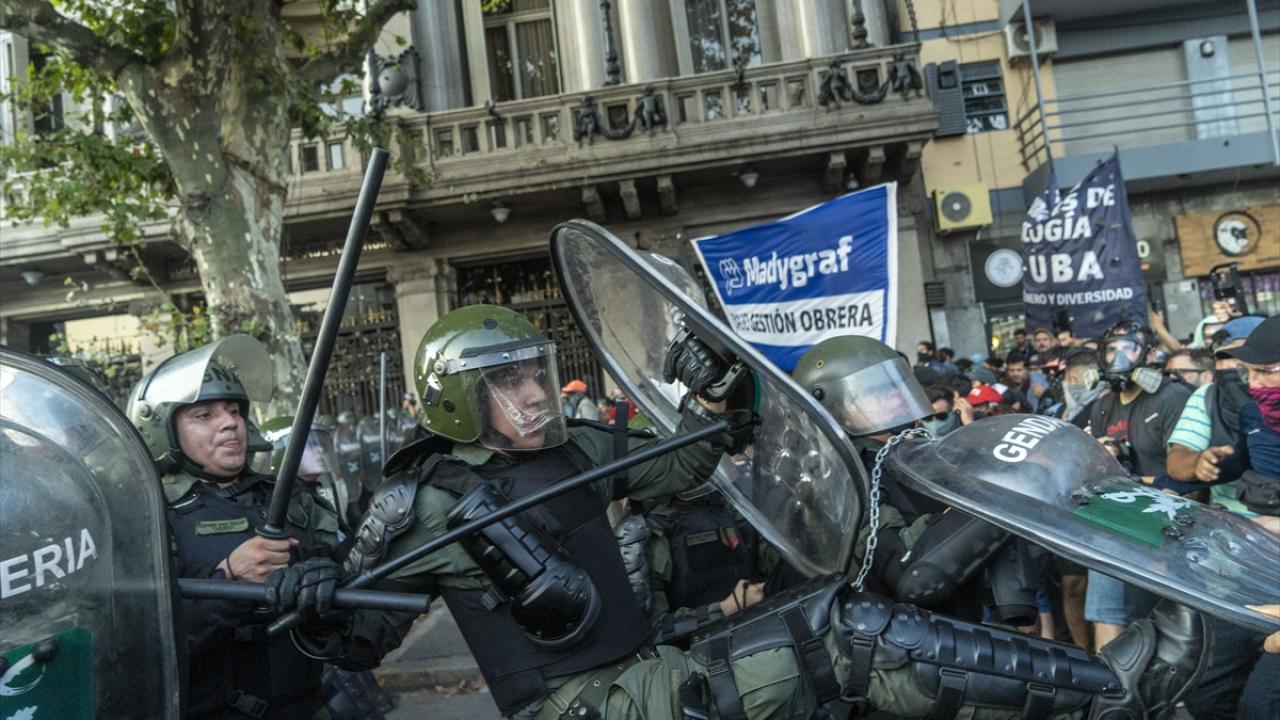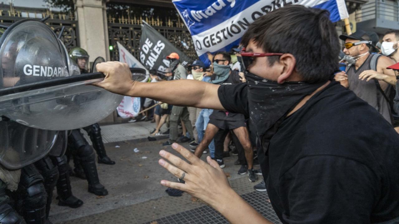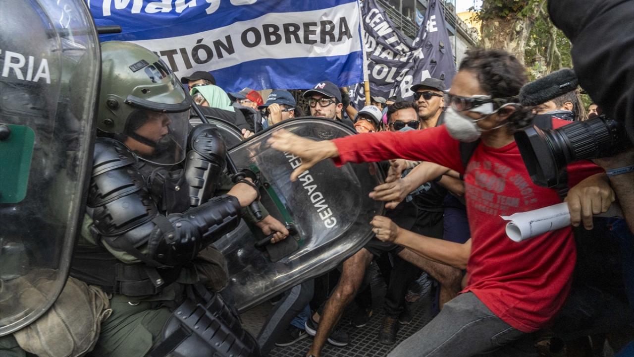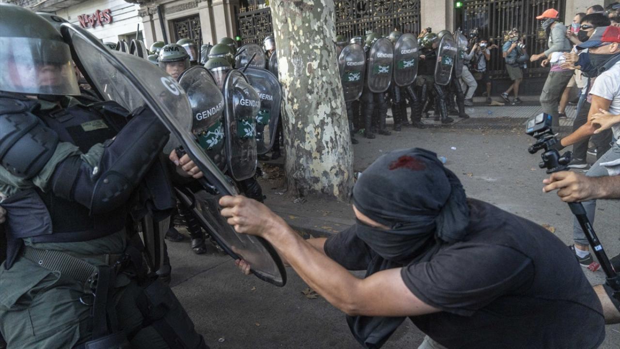Başkent Buenos Aires`te Kongre önünde bir araya gelen kalabalık gruplar, hükümetin çıkarmaya çalıştığı "torba yasayı" protesto etti.