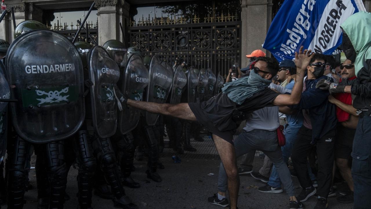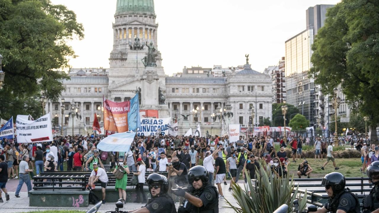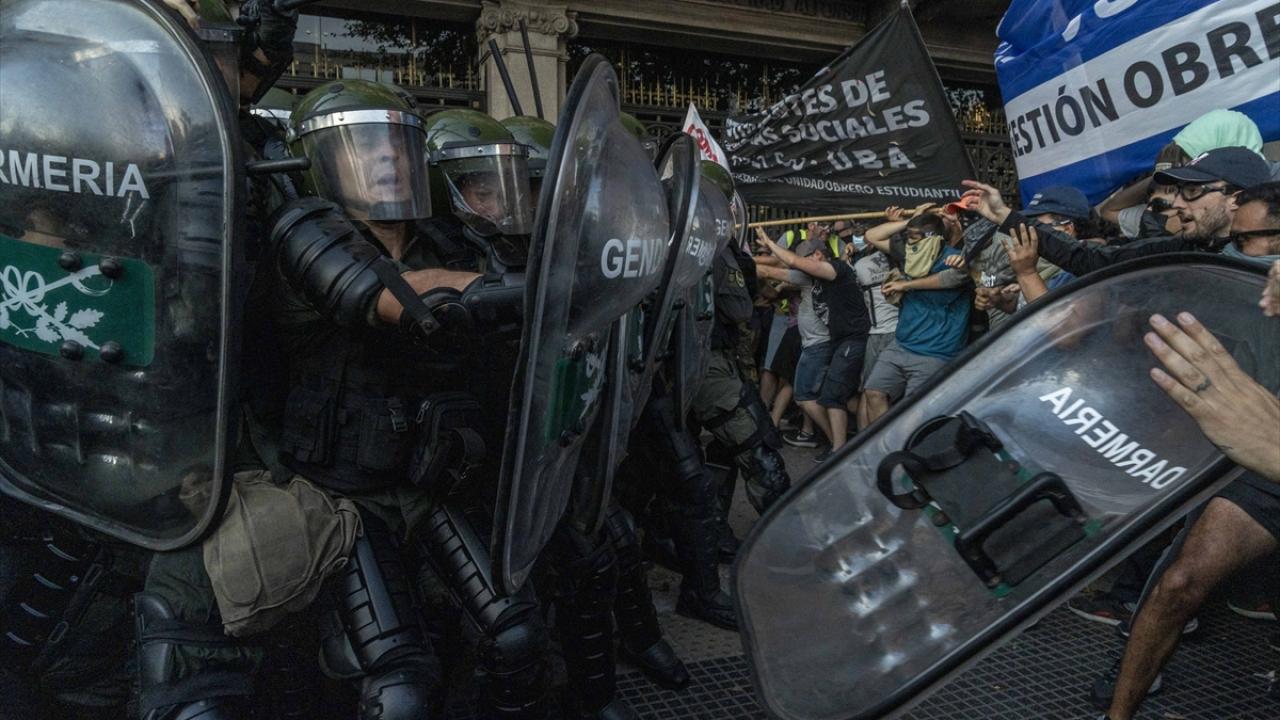 Arjantin'in başkenti Buenos Aires'te, Arjantin Başkanı Javier Milei tarafından desteklenen ve kendisine Kongre'ye danışmadan anayasa üzerinde karar alma yetkisi vermeyi amaçlayan "Torba Yasa"ya karşı çıkan yüzlerce kişi Arjantin Kongresi çevresinde bir araya gelerek protestoya devam ediyor.
