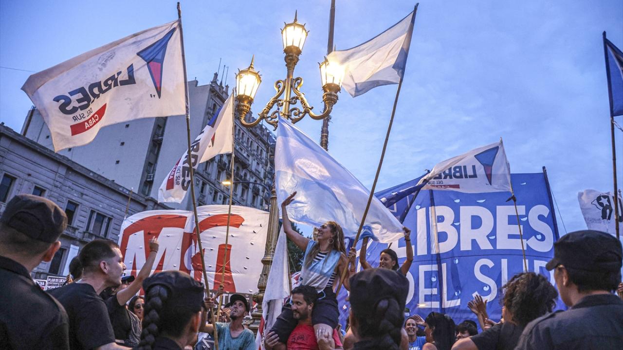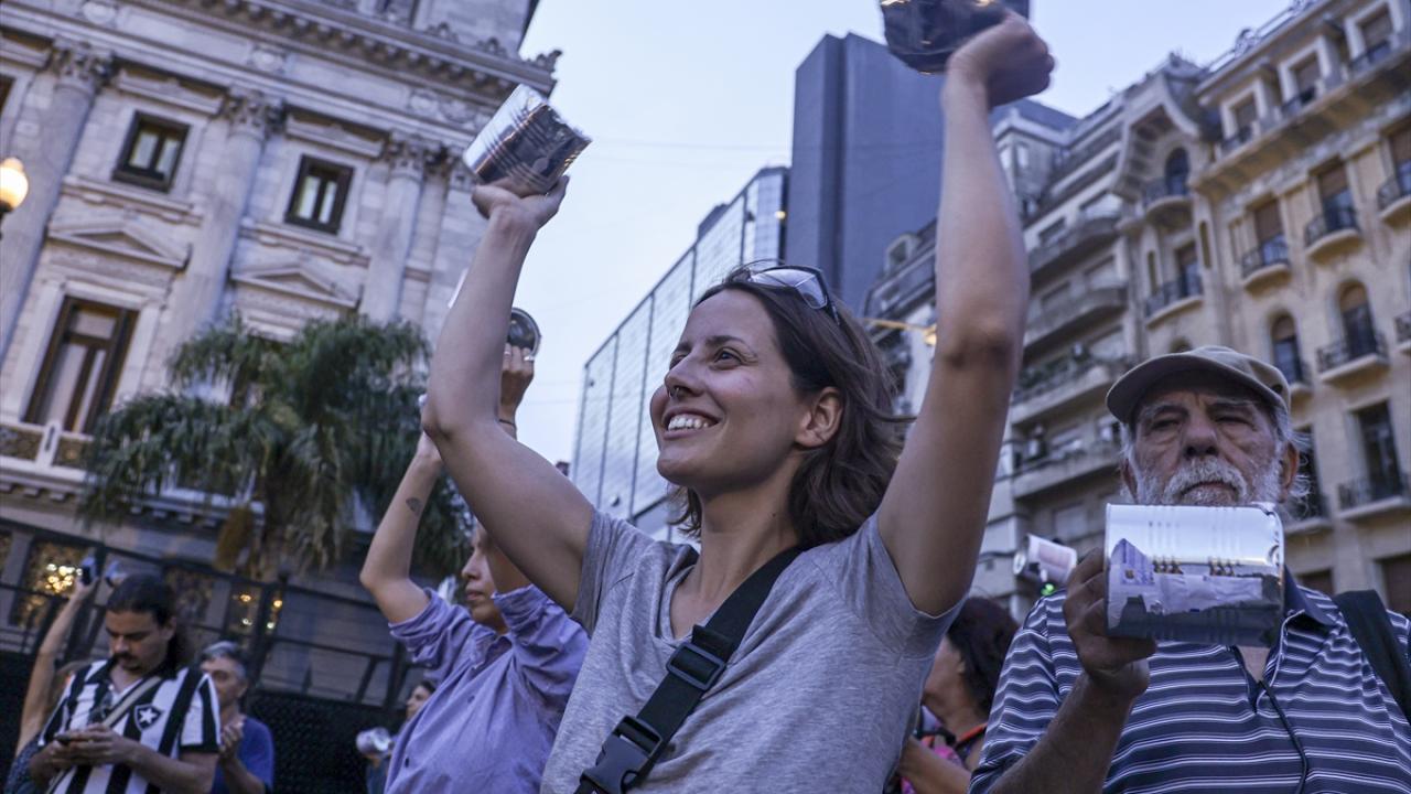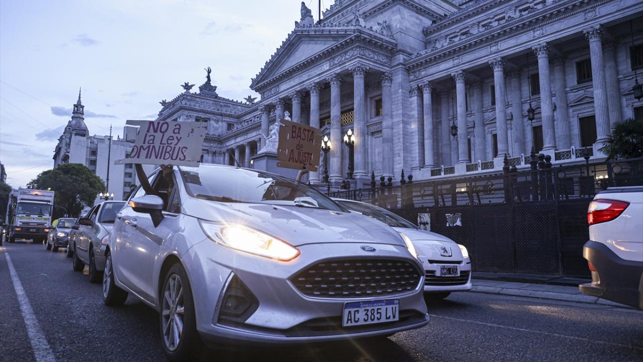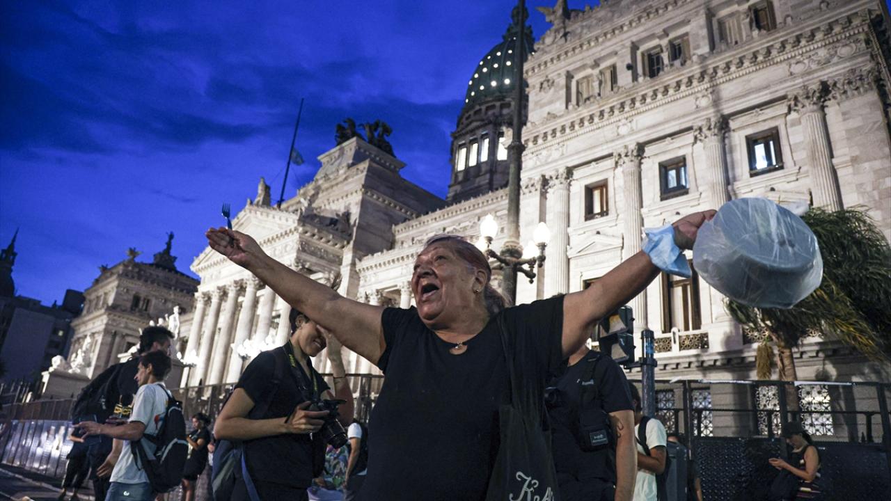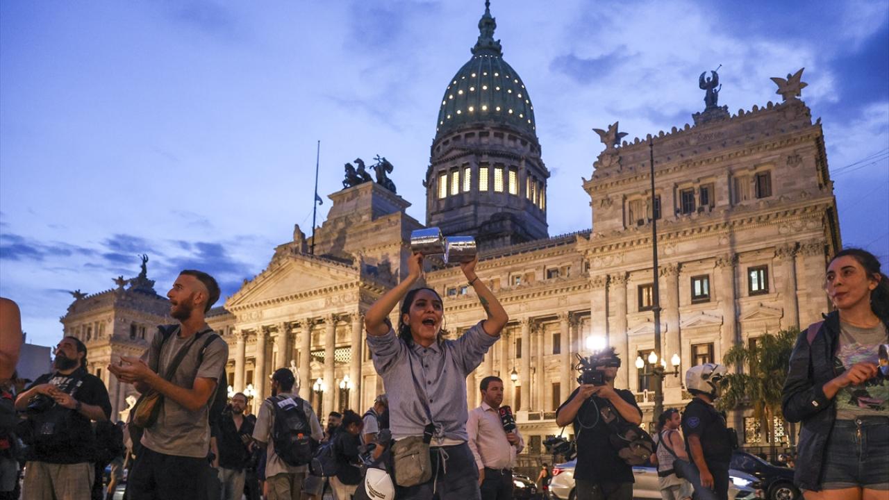 Arjantin'in başkenti Buenos Aires'te Kongre önünde bir araya gelen kalabalık gruplar, hükümetin çıkarmaya çalıştığı "torba yasa"nın yeniden görüşülmek üzere alt komiteye geri gönderilmesini kutladı.