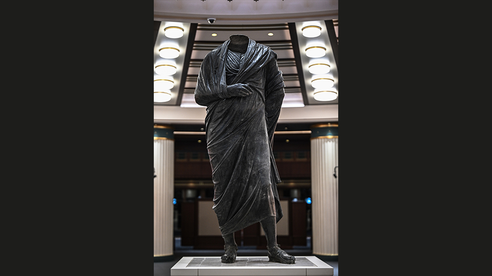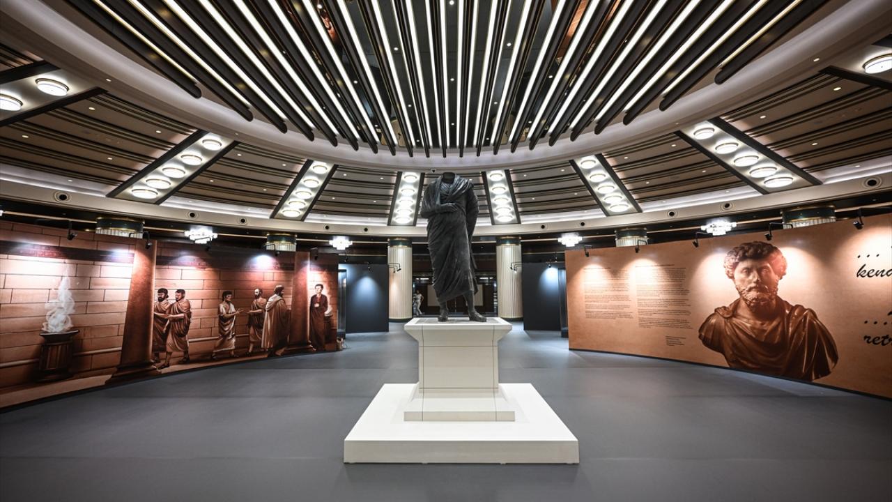 Sergide, MS 2. ve 3. yüzyıllara tarihlenen Marcus Aurelius heykeli, Cumhurbaşkanlığı Millet Kütüphanesi`nde ziyaretçilerini karşılıyor.