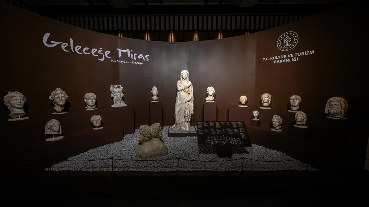Kültür ve Turizm Bakanlığınca 2023`te hayata geçirilen "Geleceğe Miras Projesi" kapsamında yürütülen kazılarda ortaya çıkarılan eserlerle kültür varlığı kaçakçılığıyla mücadelede yurt dışından iadesi sağlanan ve yurt içinde kolluk kuvvetlerince ele geçirilen eserlerden seçkin örnekler, Bir Vizyonun Doğuşu: Geleceğe Miras Projesi-Arkeolojinin Altın Çağı Sergisi`nde, Cumhurbaşkanlığı Külliyesi Millet Kütüphanesinde bir araya geliyor.