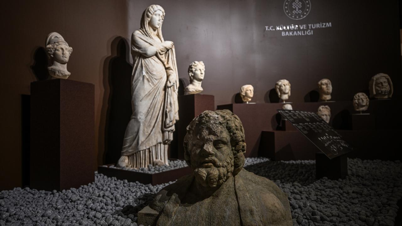 Cumhurbaşkanlığı Külliyesi'nde, 65 yıl sonra ait olduğu topraklara getirilen Marcus Aurelius bronz heykeli ile farklı antik kentlerden ilk kez sergilenen 485 eser, "Arkeolojinin Altın Çağı" sergisinde ziyaretçilerin beğenisine sunuldu.