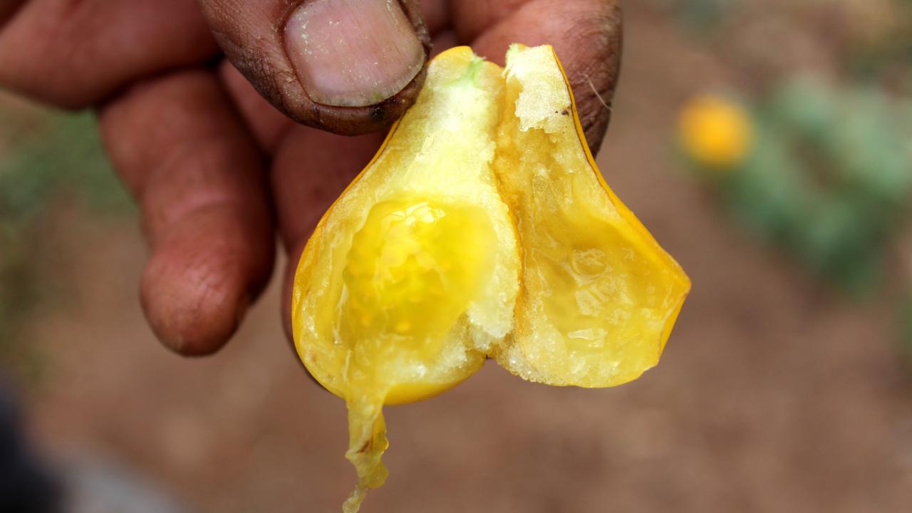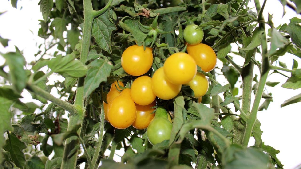 Patlıcangiller familyasından olan sarı domates şekli ve rengiyle görenlerin dikkatini çekiyor.