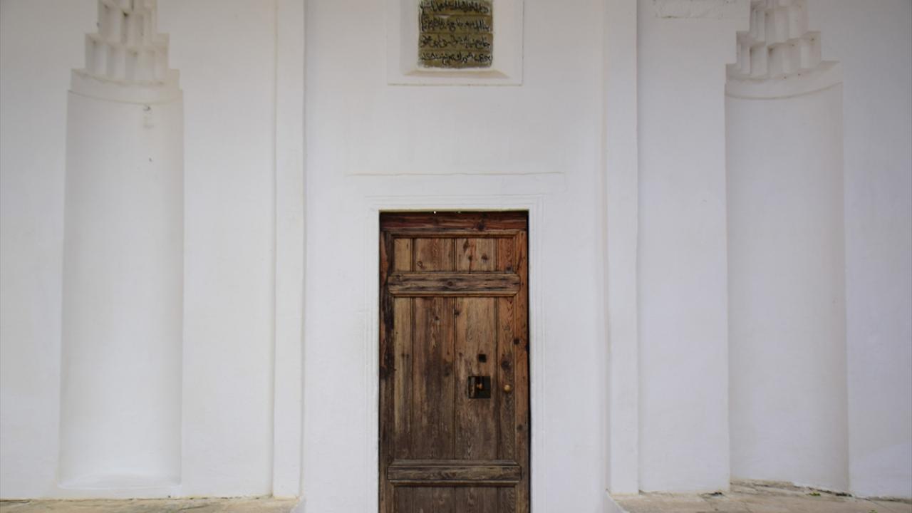 Bütünüyle taştan inşa edilmiş olan camide dikkati çeken yapılardan biri de yapıya sonradan eklendiği anlaşılan dikdörtgen planlı ve güneybatı cephesi iki yuvarlak kemer açıklıklı türbesi.