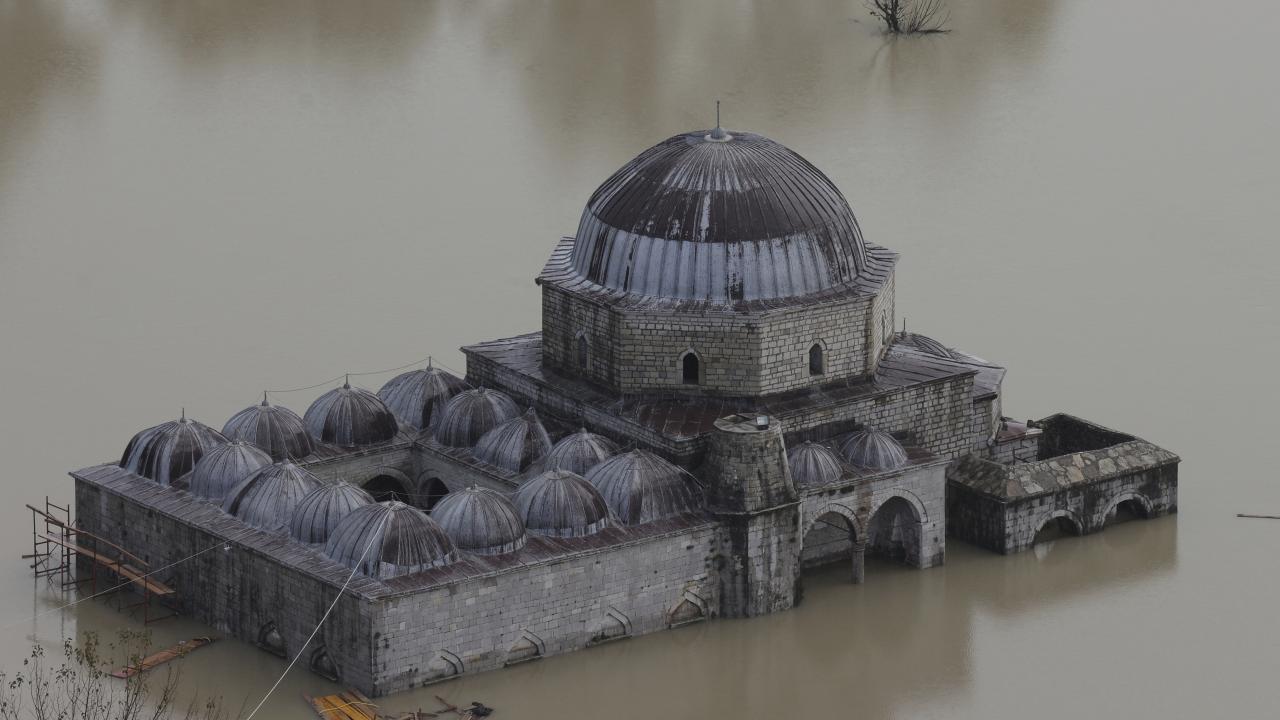 Arnavutluk'u sel vurdu: Osmanlı'dan kalma Kurşunlu Camii de su altında