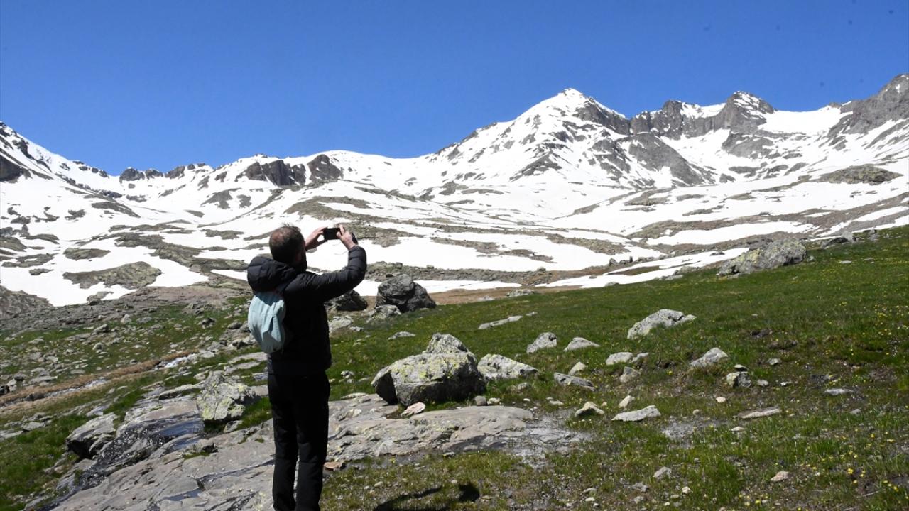 Balki, bölgede adeta yaz ve kış ayını bir arada yaşadıklarını dile getirerek, Yine yürüdüğümüz alanların bir kısmı kar altında diyebilirim. Bir taraftan sıcak bir taraftan karın sağlamış olduğu muhteşem bir keyif var." ifadelerini kullandı.