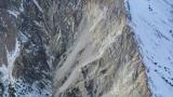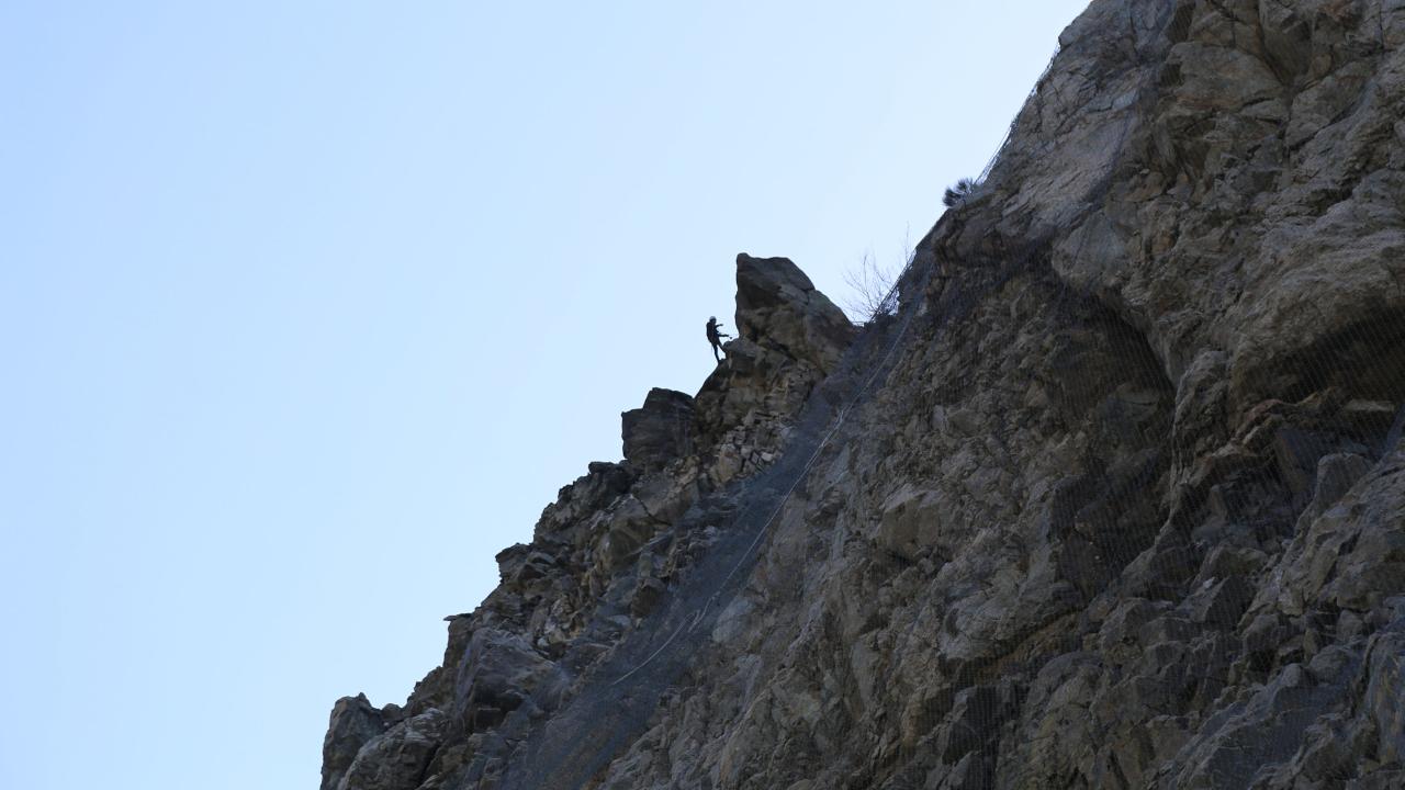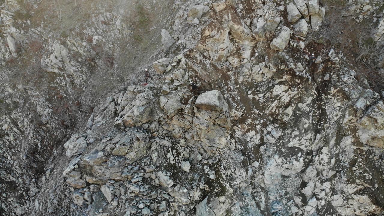 Yamaçlara tırmanan 5 dağcı, çeşitli araç gereçleri kullanarak kaya parçalarını kontrollü şekilde düşürüyor.