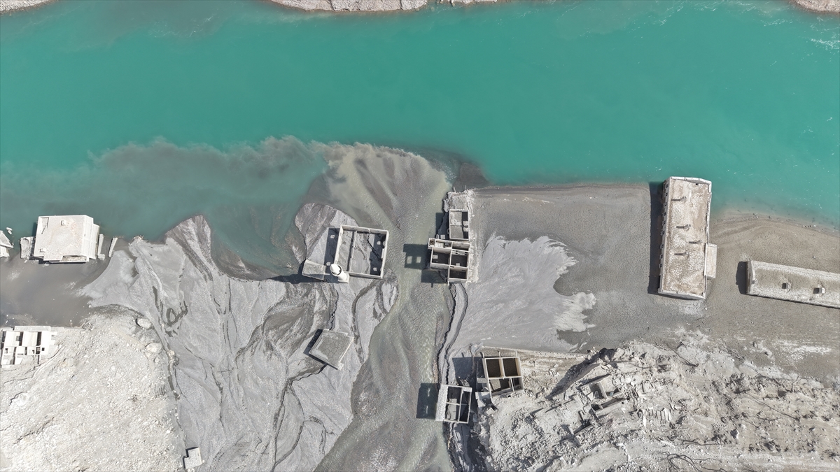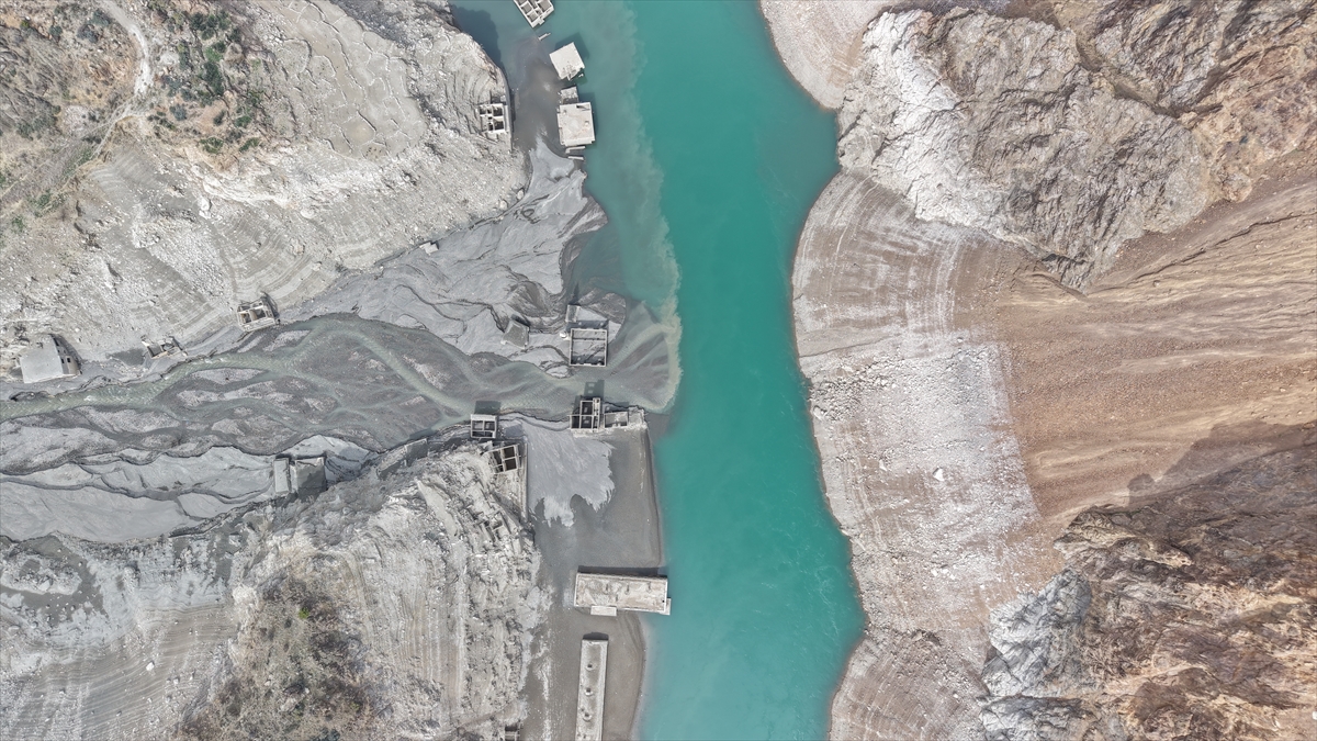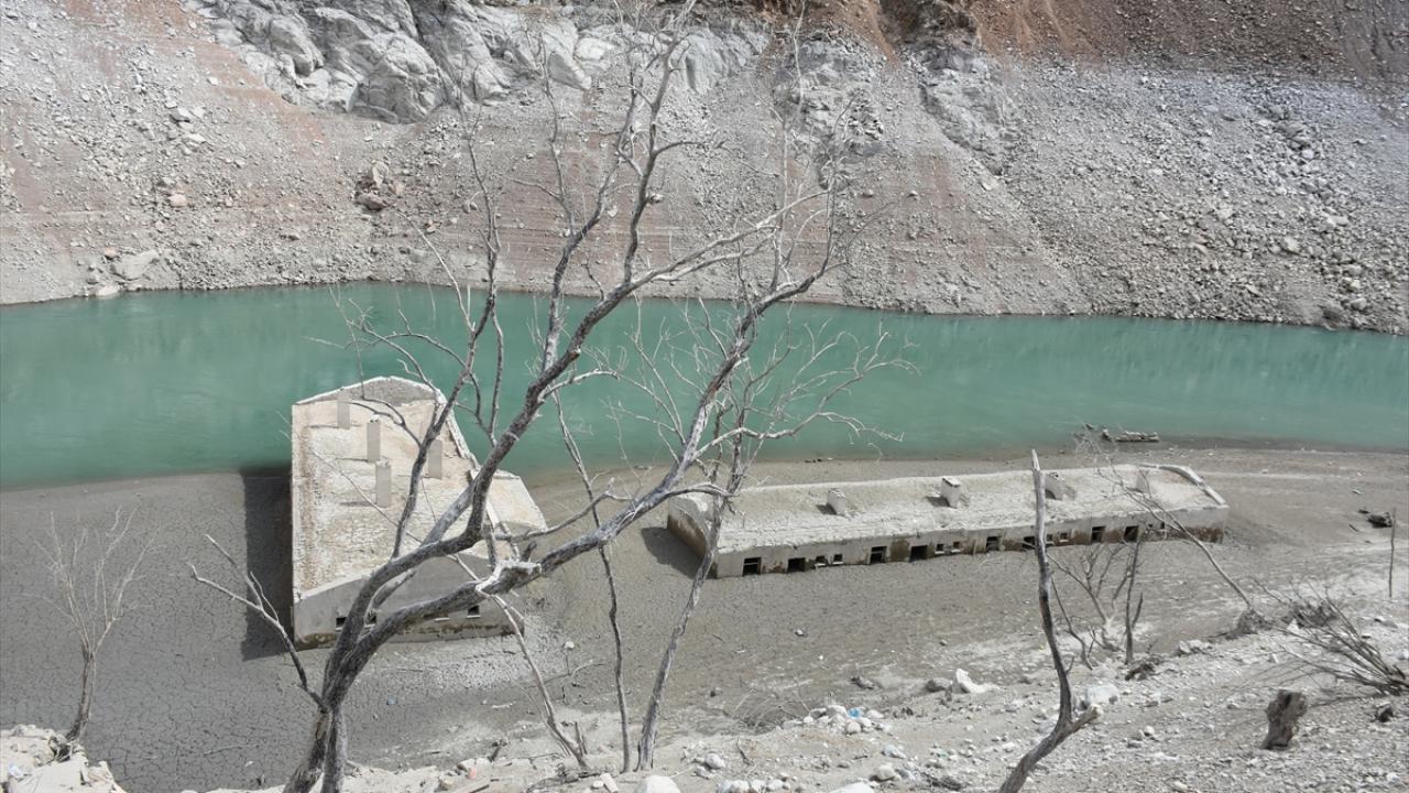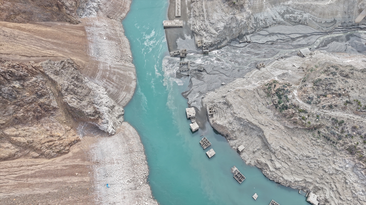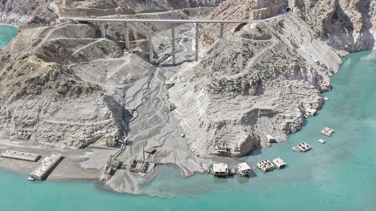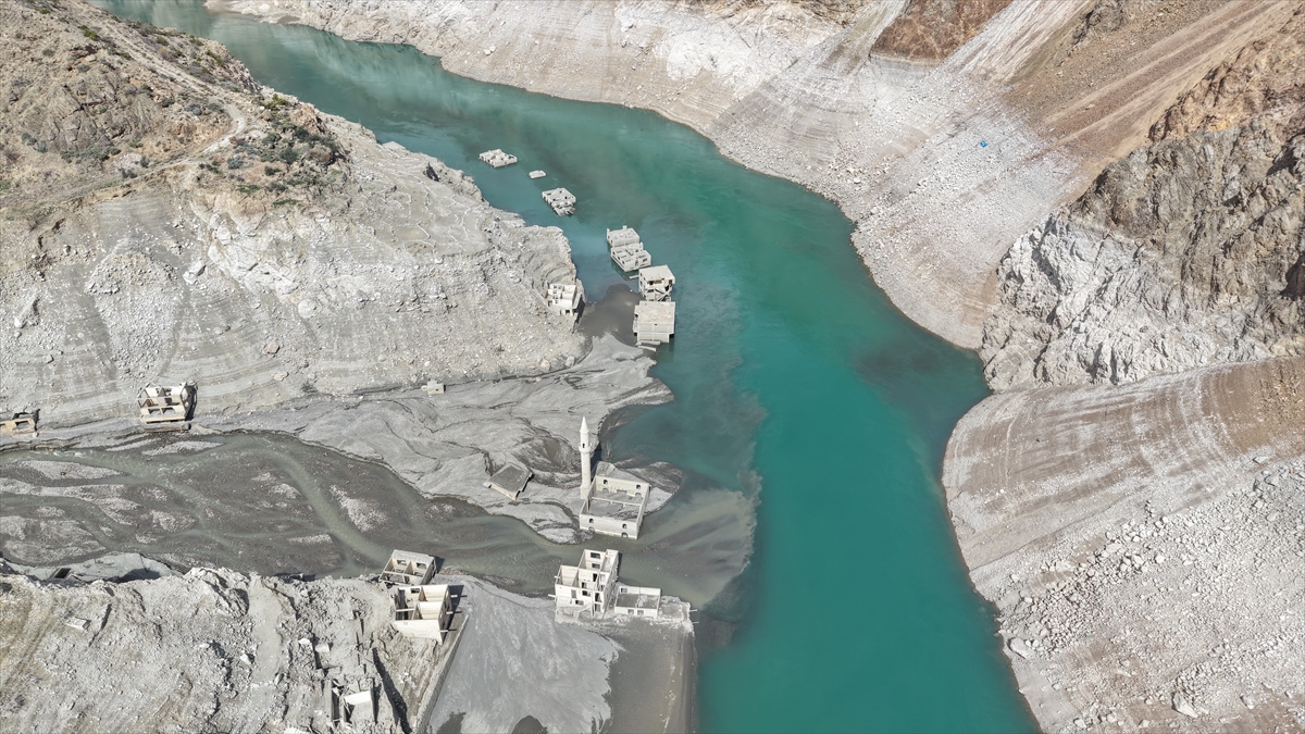 Artvin'de 2012'de hizmete açılan Deriner Barajı ve Hidroelektrik Santrali (HES) suları altında kalan Narlık köyü, barajdaki su seviyesi azalınca gün yüzüne çıktı.
