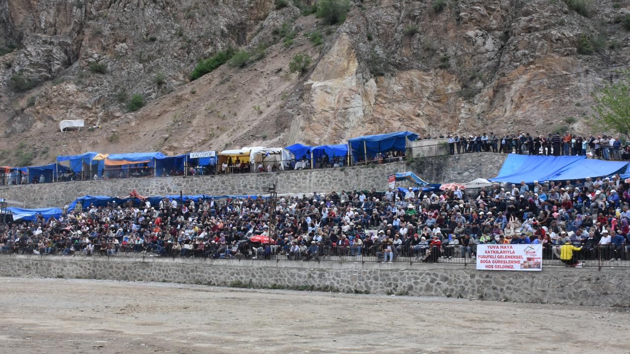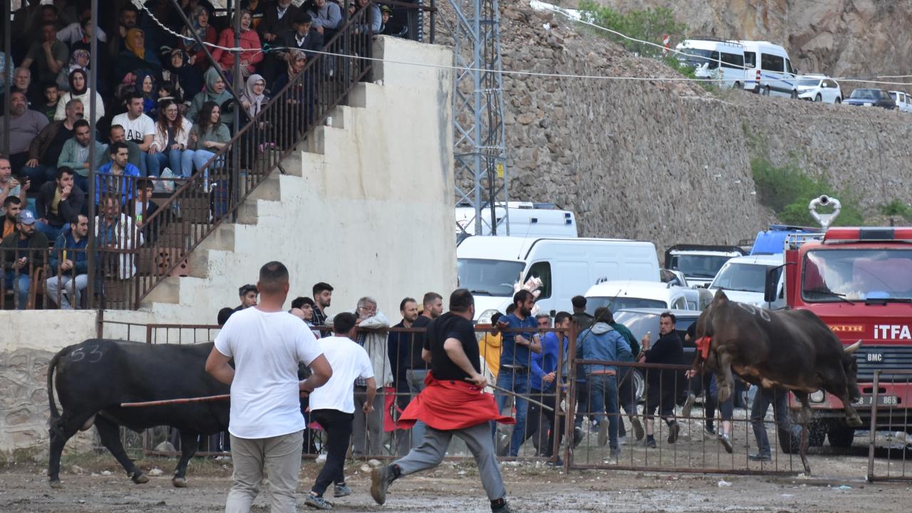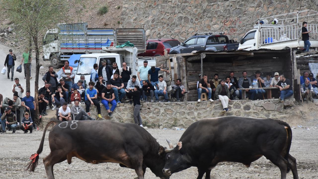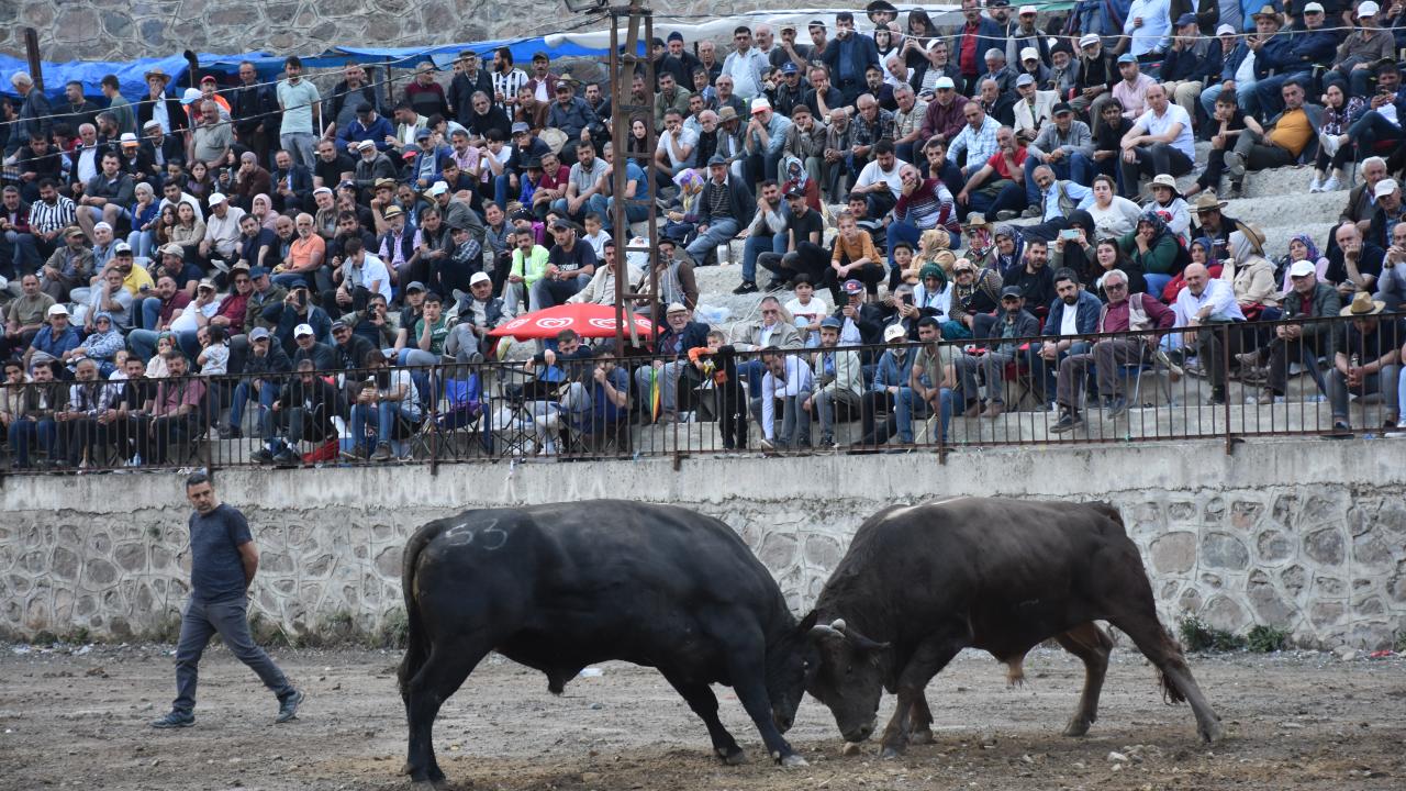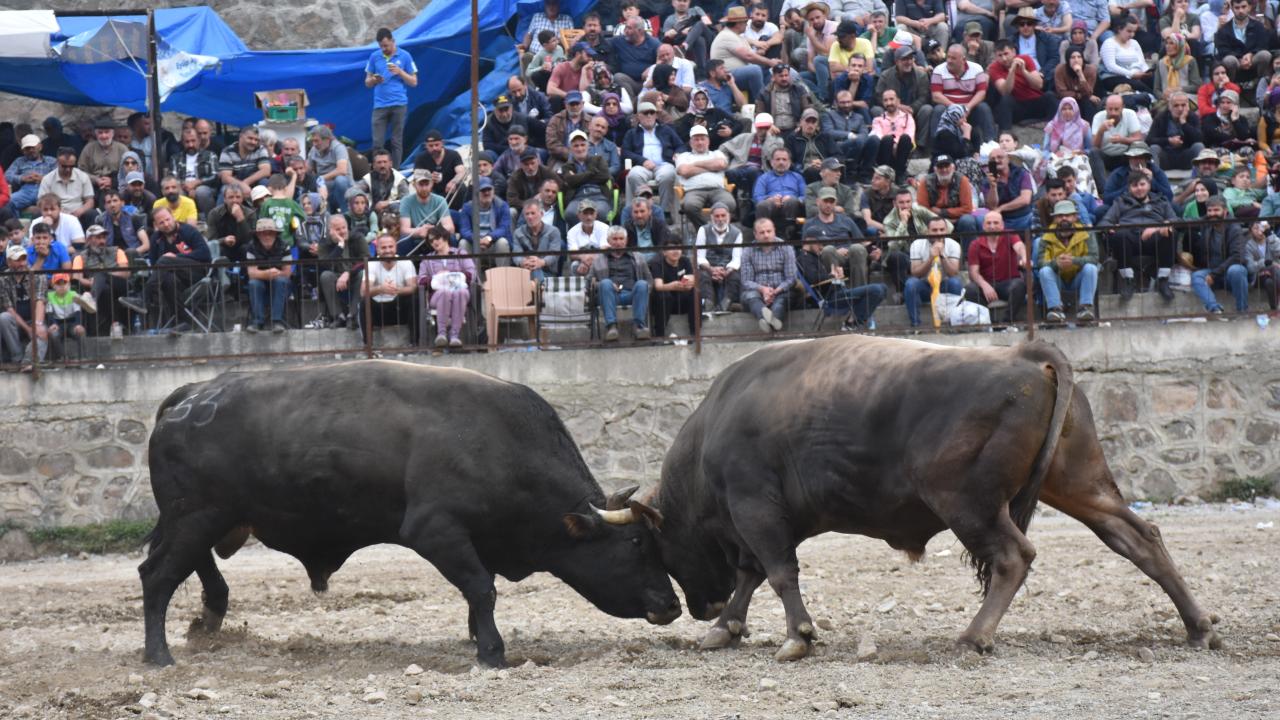 Artvin`in Yusufeli ilçesi Sarıgöl Dutluk bölgesinde arenada yapılan etkinlikte farklı illerden getirilen 103 boğa yer aldı.