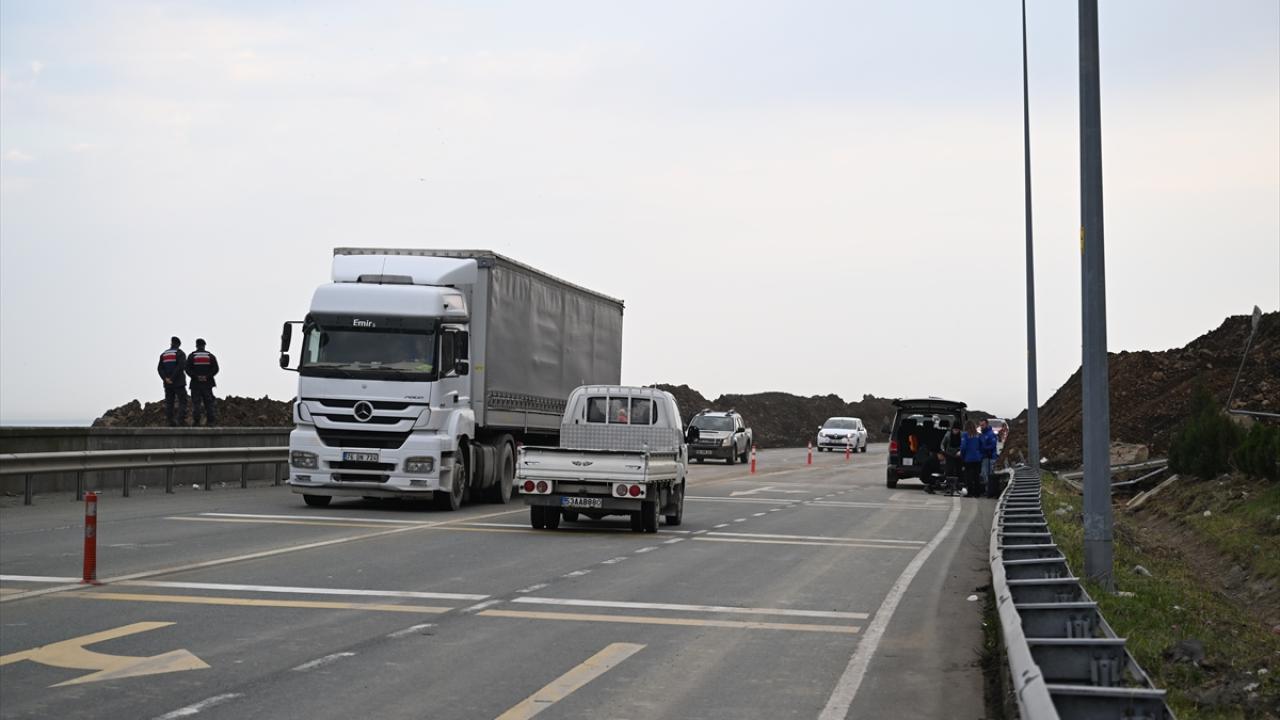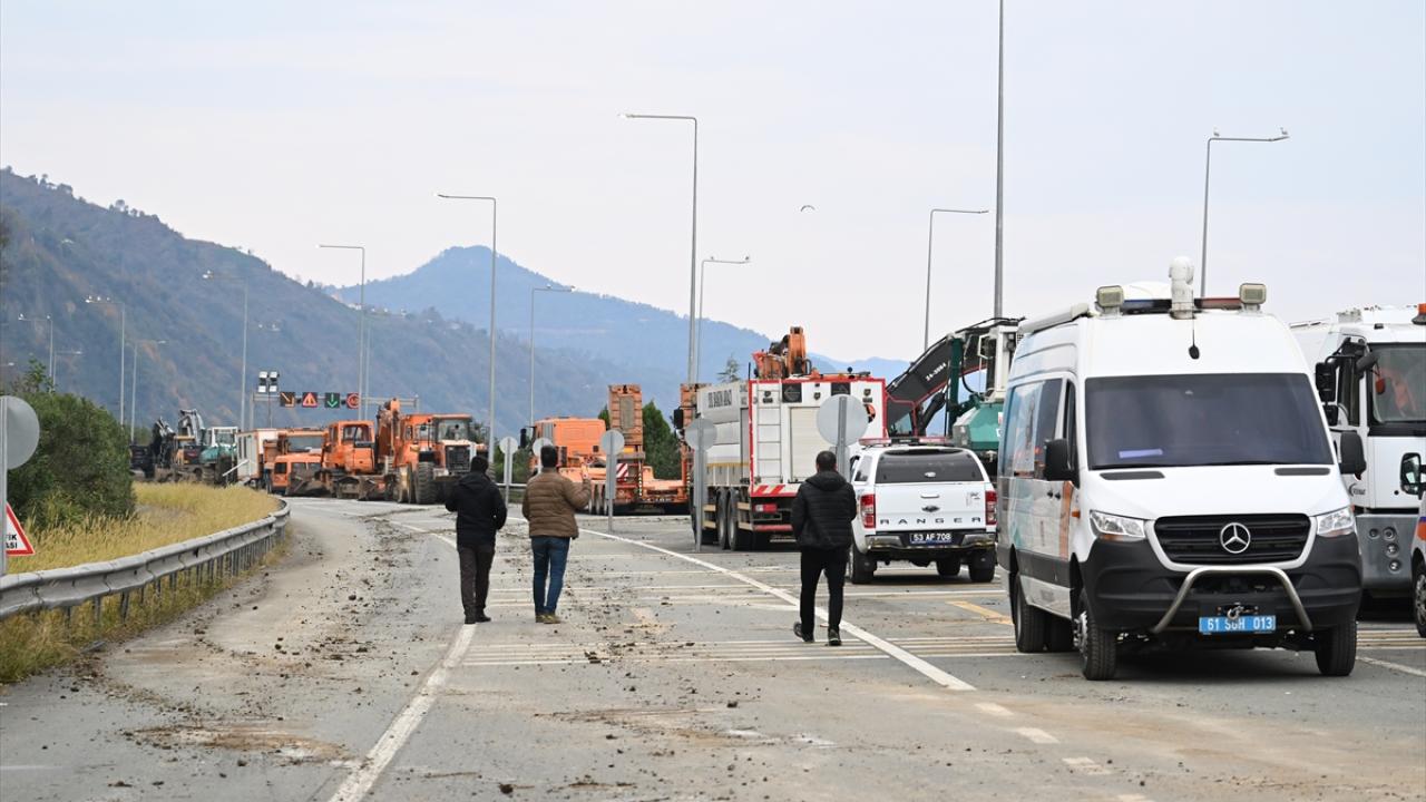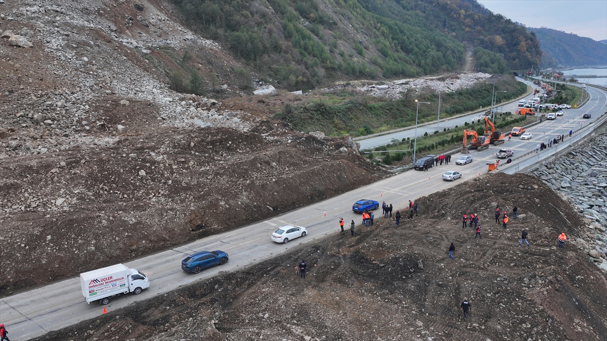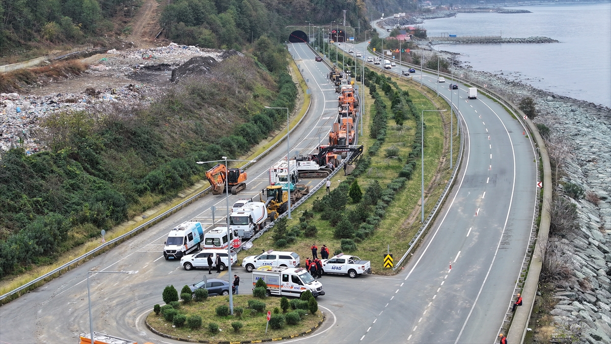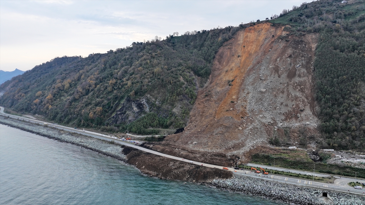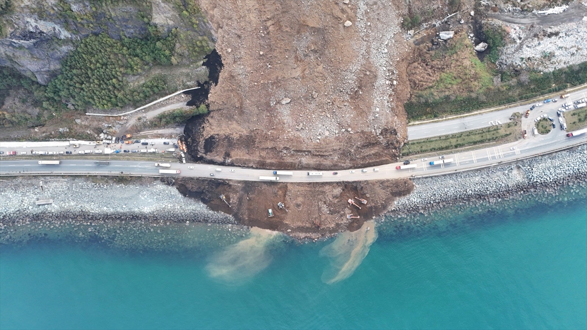 Heyelanın meydana geldiği Arhavi`nin Kıyıcık mevkisinde, iş makinelerince diğer şeridin açılması için yapılan çalışmalar gece boyunca devam etti.