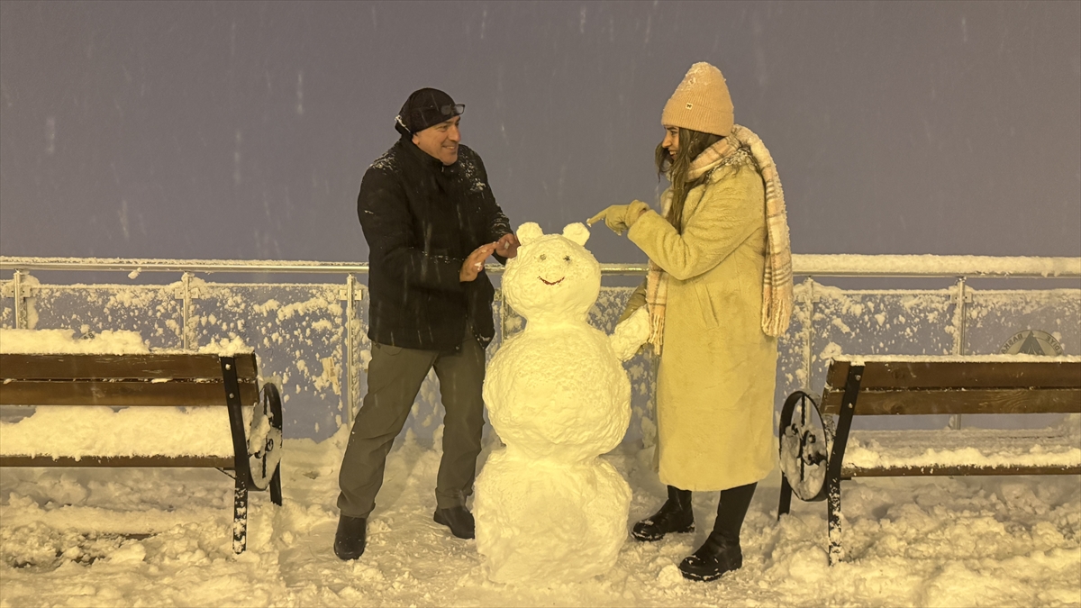 Bazı vatandaşlar kar yağışıyla oluşan güzel manzaralar önünde fotoğraf çektirirken bazıları da kardan adam yaparak karın keyfini çıkardı.