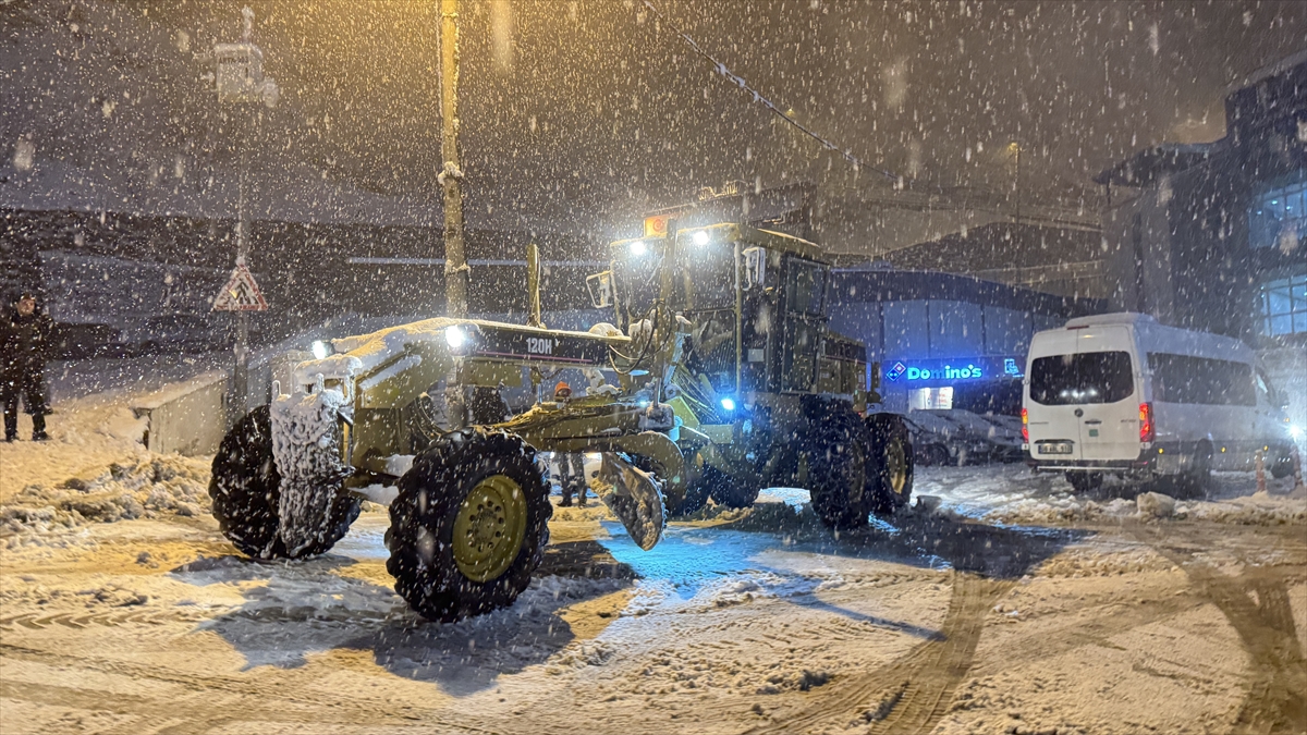 İl merkezindeki şehir içi trafiğinde aksamalar yaşanırken belediye ekipleri, cadde ve sokaklarda iş makineleriyle kar temizleme ve tuzlama çalışması yaptı.
