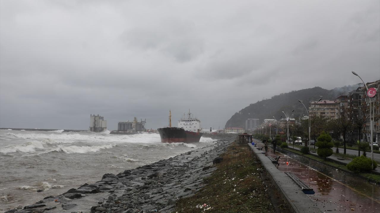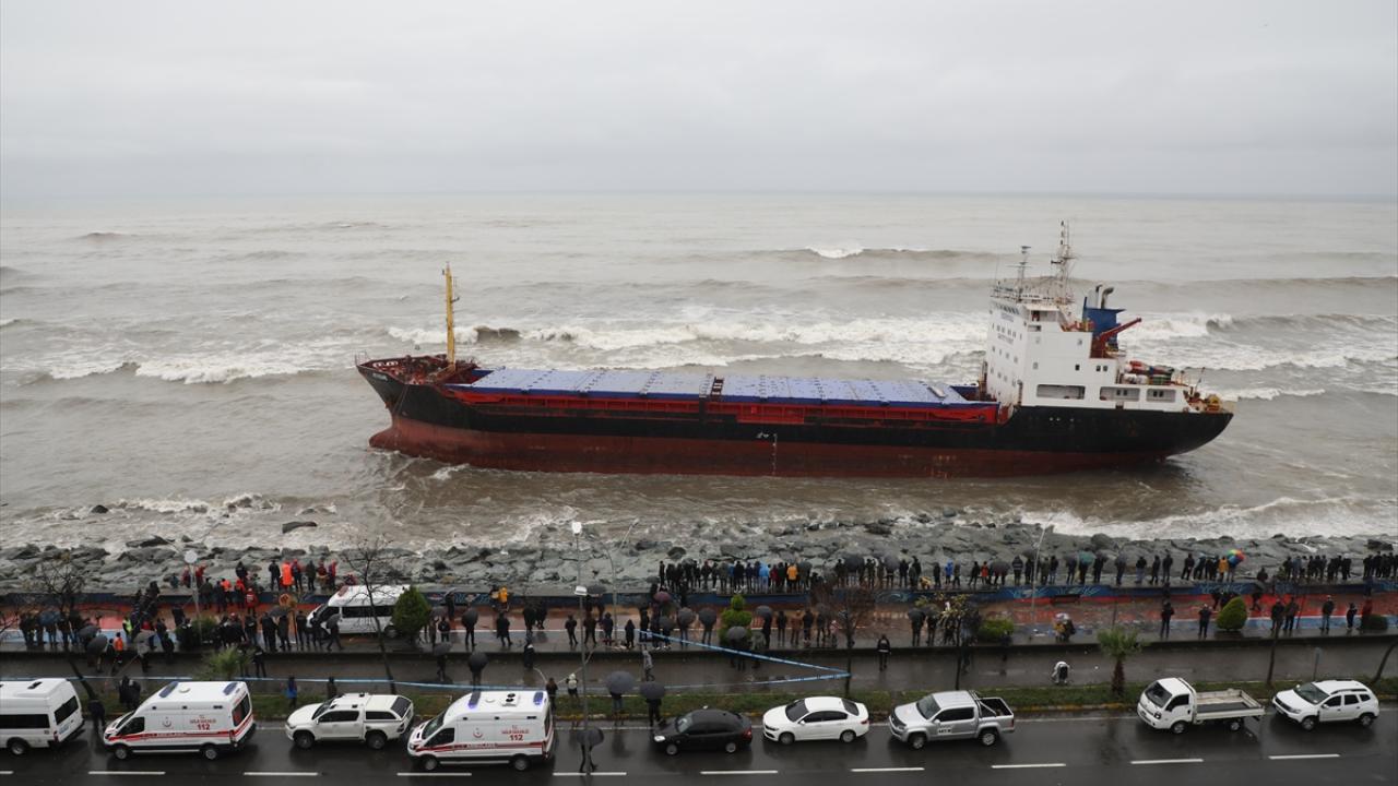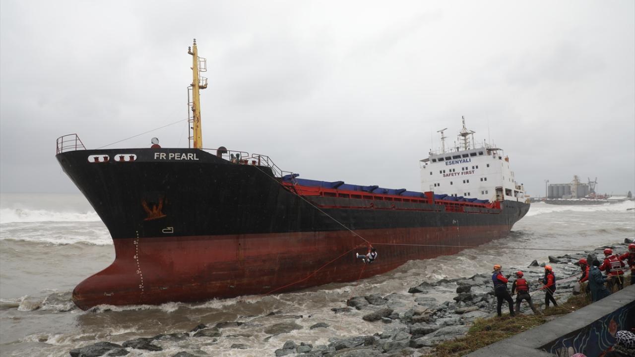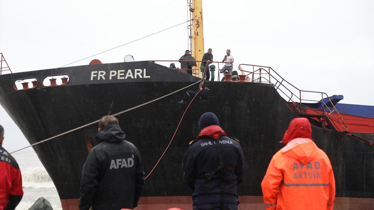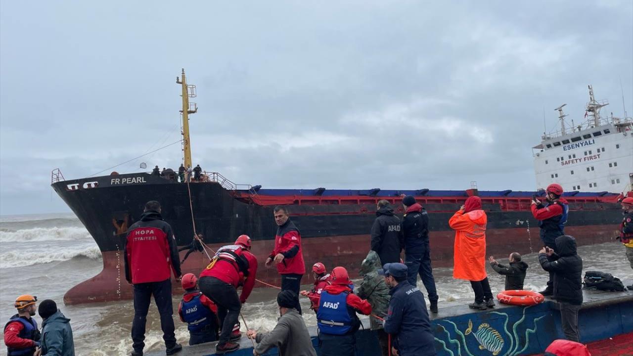 Hopa ilçesi açıklarında fırtına nedeniyle Palau bandıralı "FR Pearl" adlı kuru yük gemisi kıyıya sürüklendi.