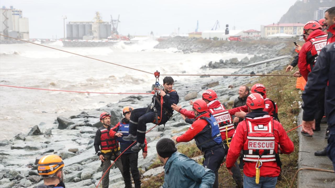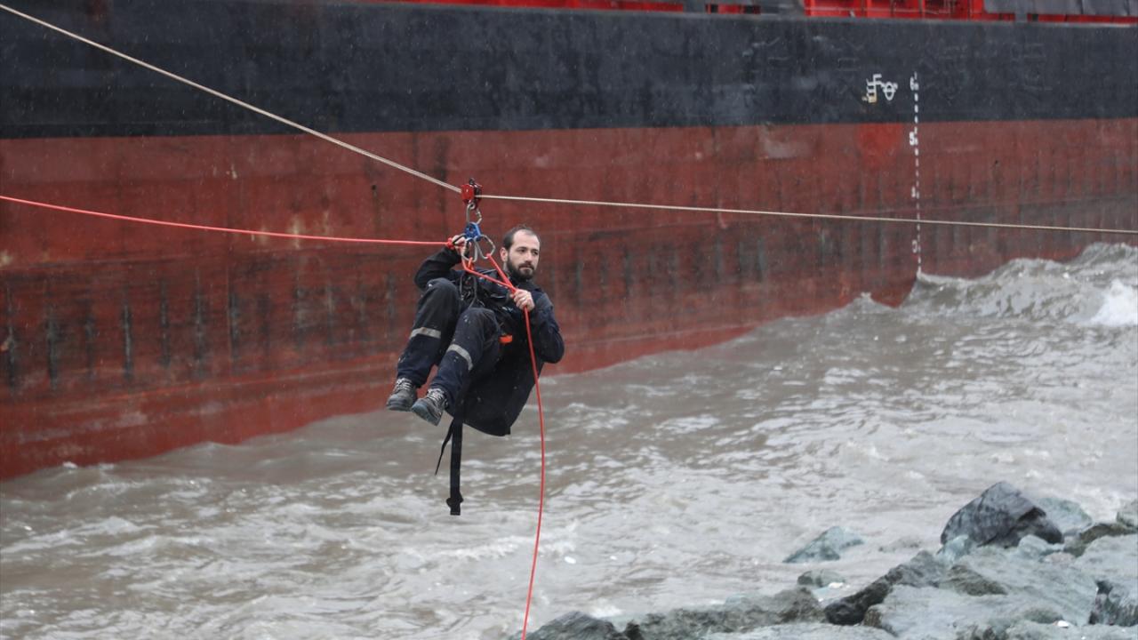 Mürettebat, gemiyle kara arasında kurulan zipline (iki nokta arasında çelik halatlar ve makara üzerinden, kullanıcıların emniyet kemeriyle bir noktadan diğer noktaya kayması) sistemiyle kıyıya çıkarıldı.