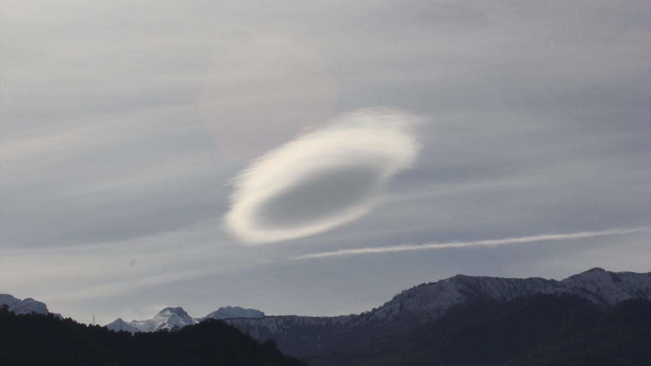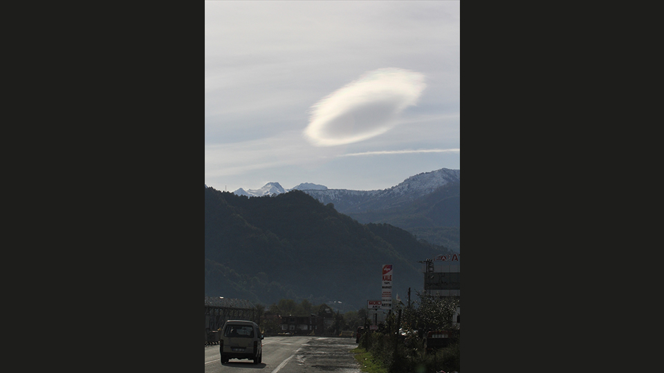 Arhavi ilçesinde gökyüzünde çok katmanlı mercek bulutu oluştu. Görenlerin ilgisini çeken bulut, bir süre sonra dağıldı.