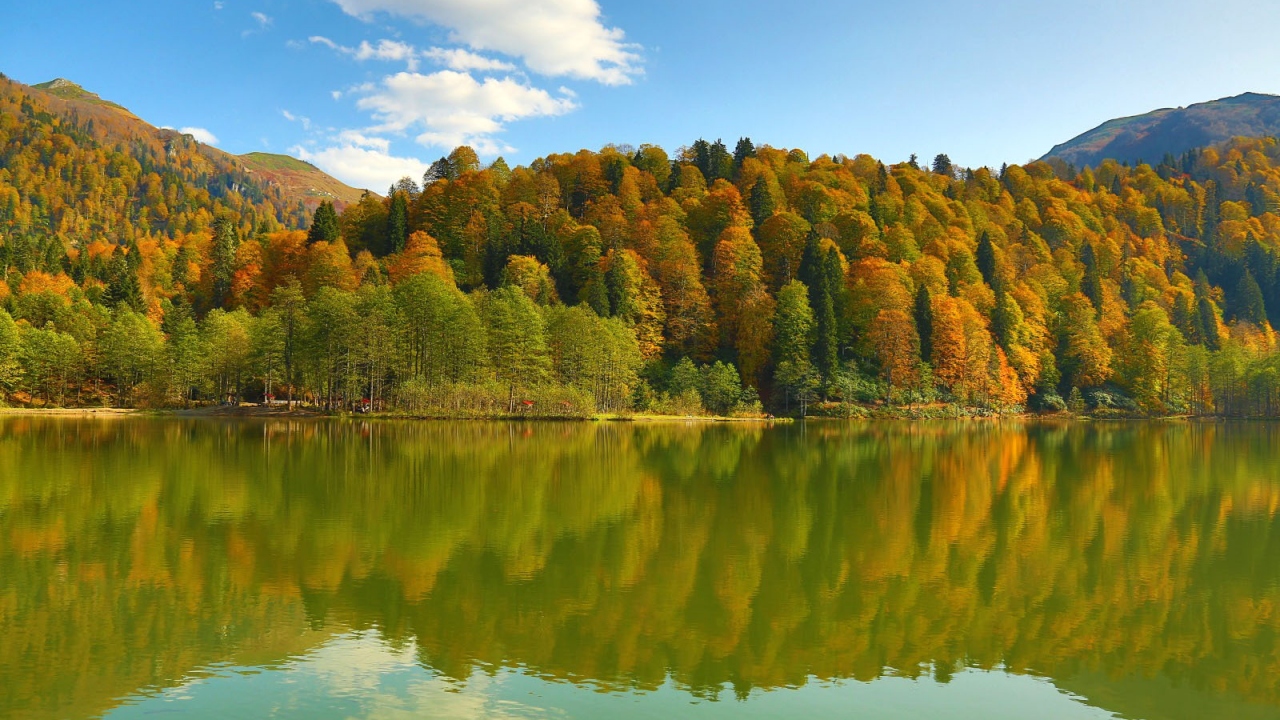 Sonbaharla renk değiştiren bitki örtüsü, çevresindeki ağaçların yapraklarının sararması, dağların zirvesini kapatan sis bulutları güzel görüntüler oluşturdu.