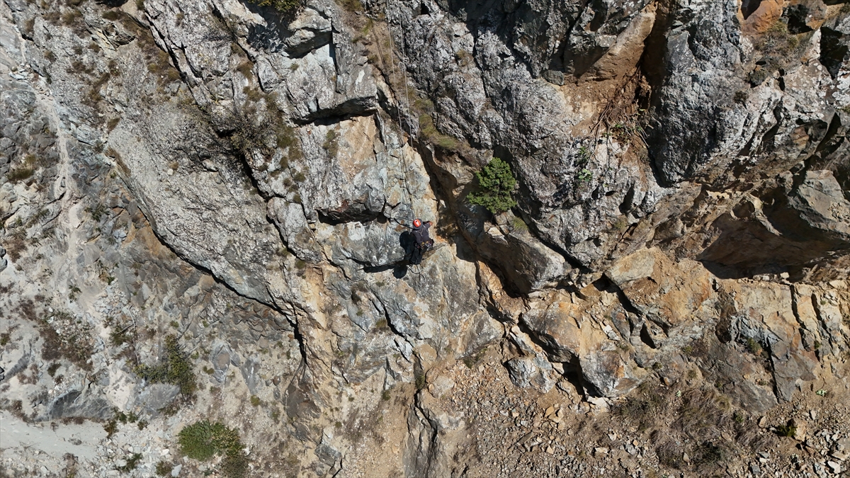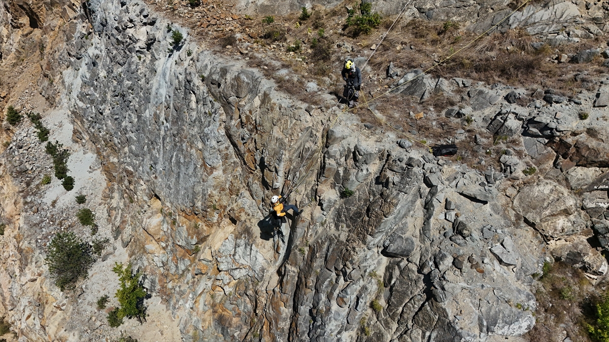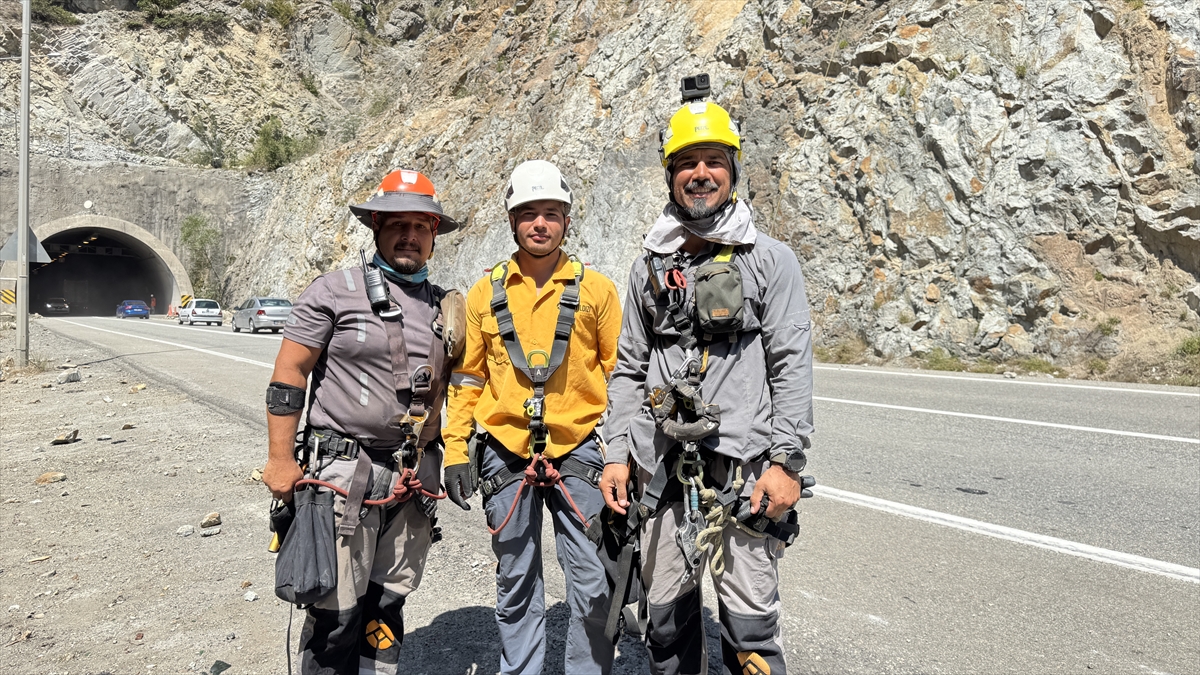 Karayolları Trabzon 10. Bölge Müdürlüğünce yürütülen çalışma kapsamında, Artvin-Borçka karayolu güzergahındaki Sümbüllü mevkisinde yamaçlarda askıda kalan ve düşme tehlikesi bulunan kayalar 3 endüstriyel dağcı tarafından temizlendi.