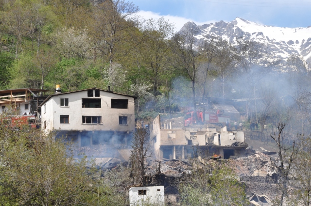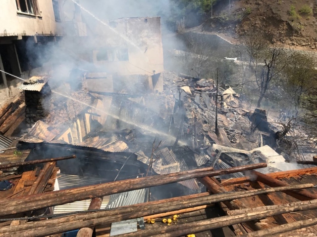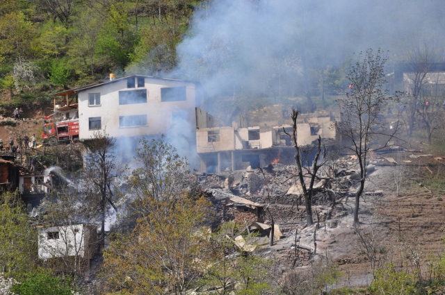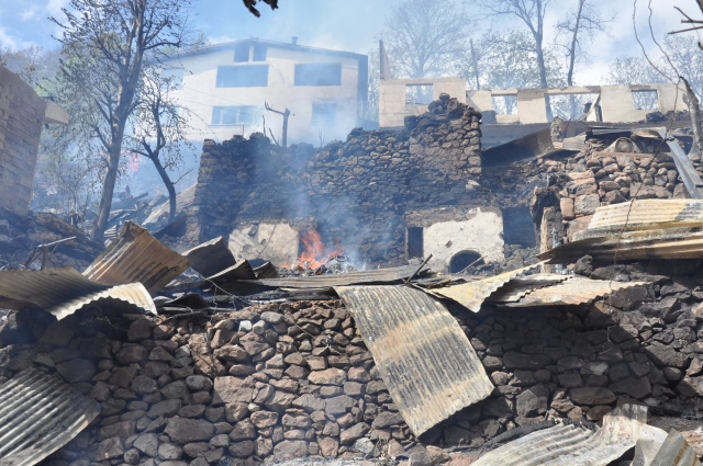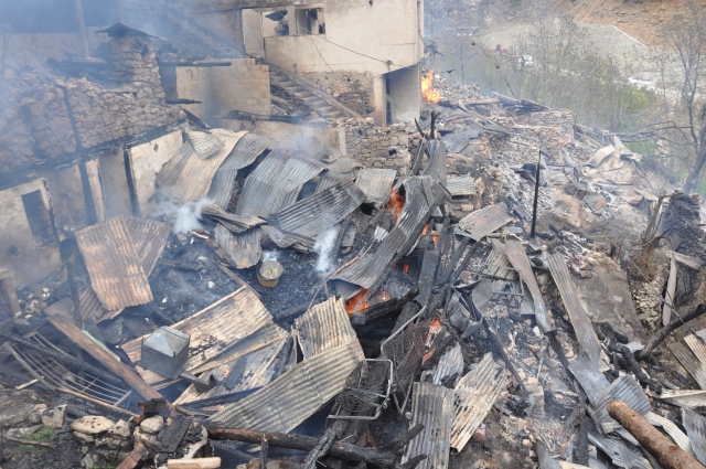Artvin'de merkeze bağlı Ortaköy'de henüz belirlenemeyen bir nedenden dolayı çıkan yangında 8 ev kullanılamaz hale geldi.
