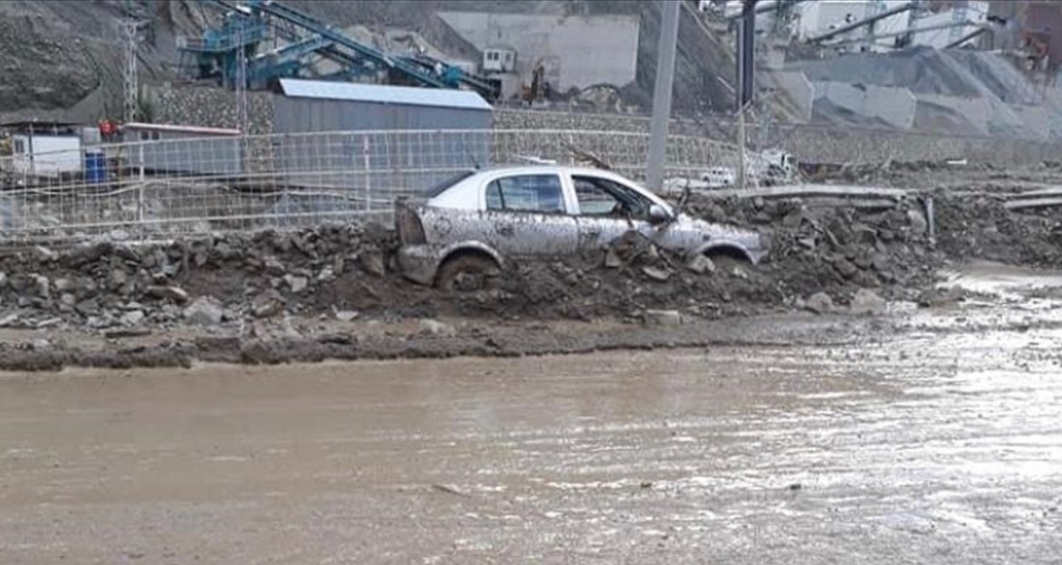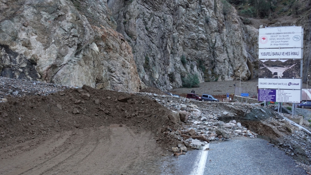 Yağmur sularının yol açtığı taşkınlar baraj şantiyesine zarar verirken, kara yolundaki iki tünelin giriş ve çıkışları toprak ve kaya parçalarıyla kapandı.