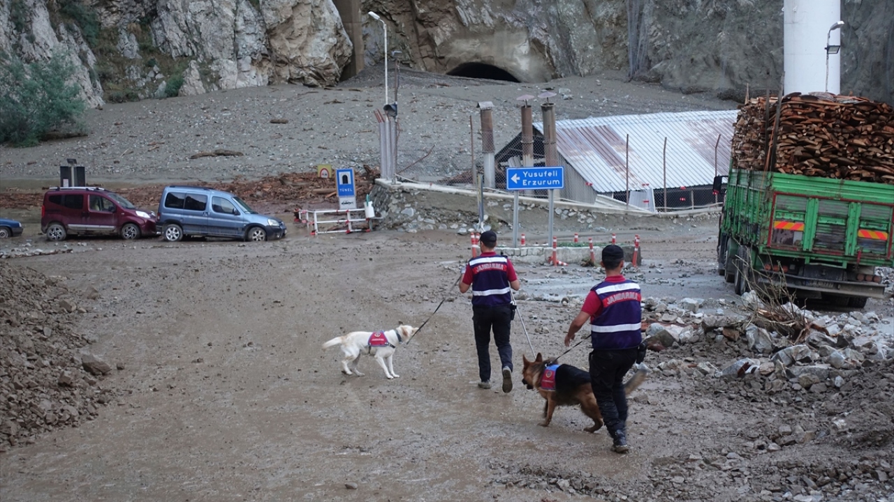 Bölgede AFAD ve jandarma ekipleri, iz takip köpekleriyle kayıp 3 kişiyi arama çalışmalarına devam ediyor.