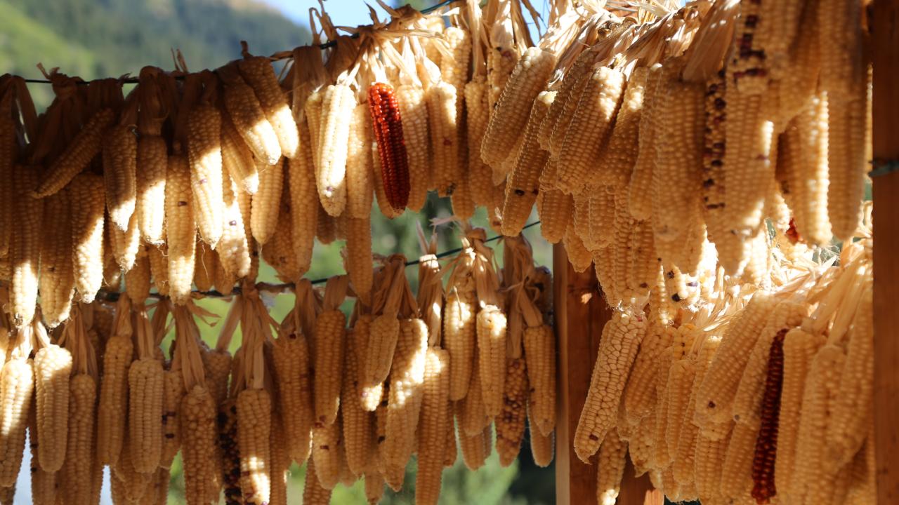 Evlerin balkonlularına astıkları mısırlar, çatı katlarına serdikleri fasulyeler ve evlerin altlarına sıra sıra dizdikleri odunlar adeta kartpostallık görüntüleri ortaya koyuyor.