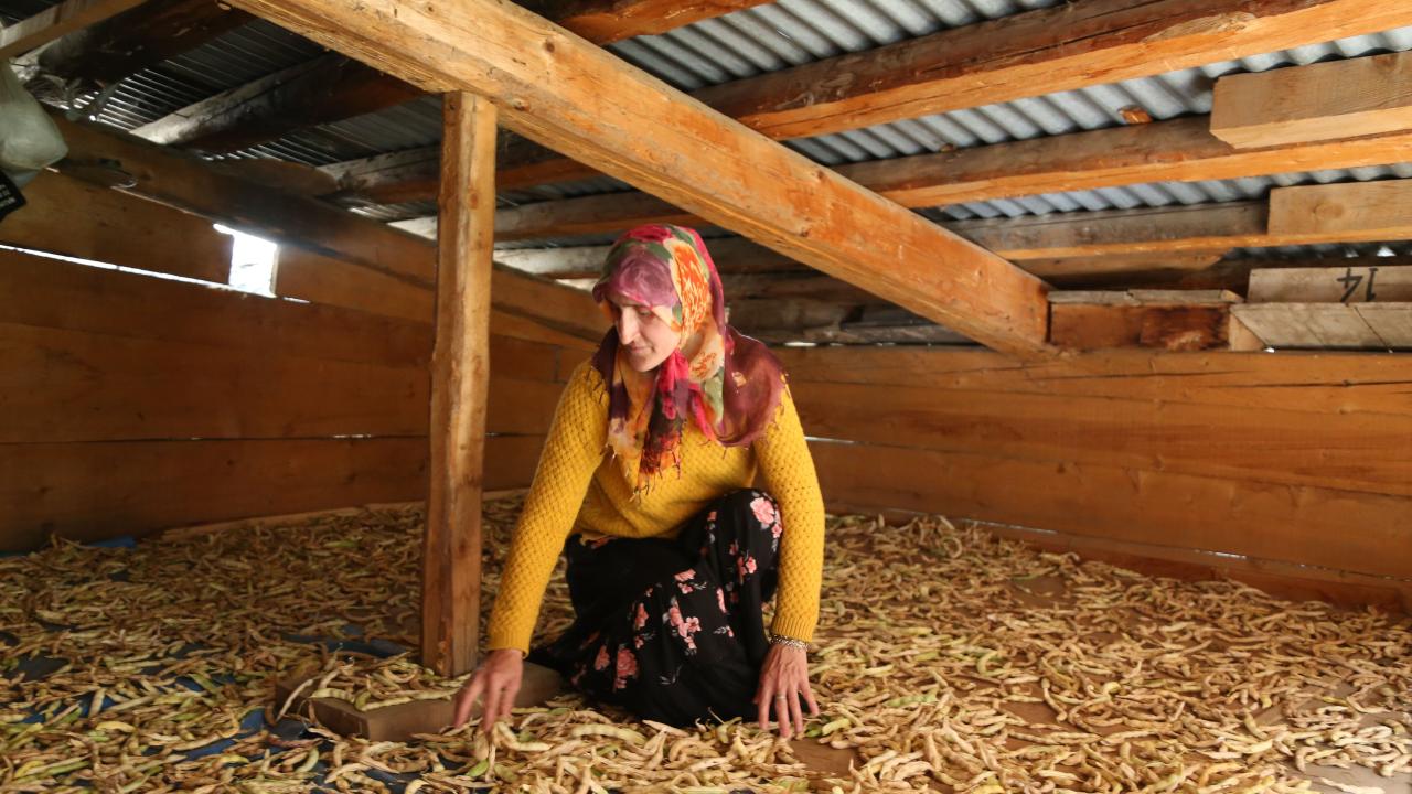 İlçe merkezine 42 km uzaklıkta bulunan Mısırlı köyü sakinleri kışlık yiyecekleri olan fasulye, patates, mısır ve meyve hasatları yaparken kurutmak için ahşap evlerinin balkonlarında sermeye başladı.