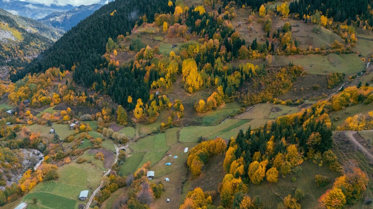 Artvin'de, sonbahar mevsiminde doğanın dönüşümü, dağlık coğrafyasındaki ormanlarda farklı renkler sunuyor.