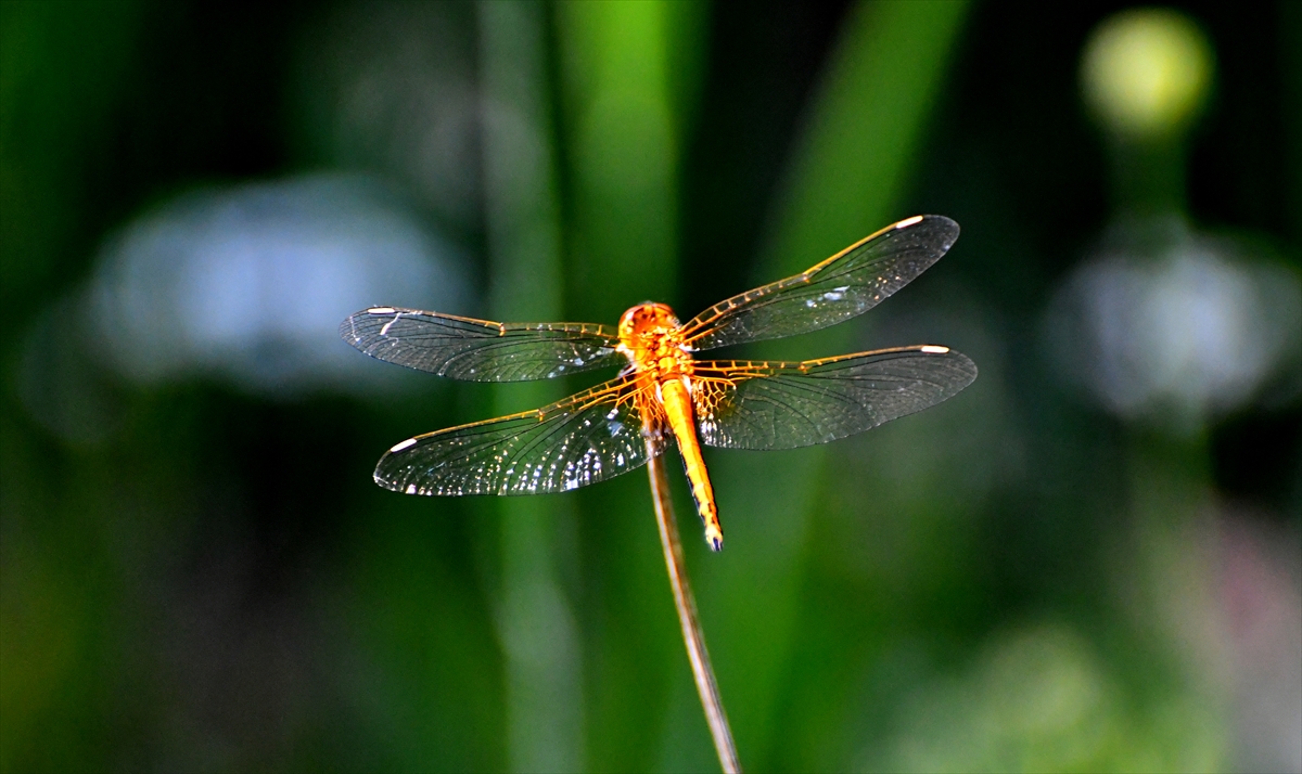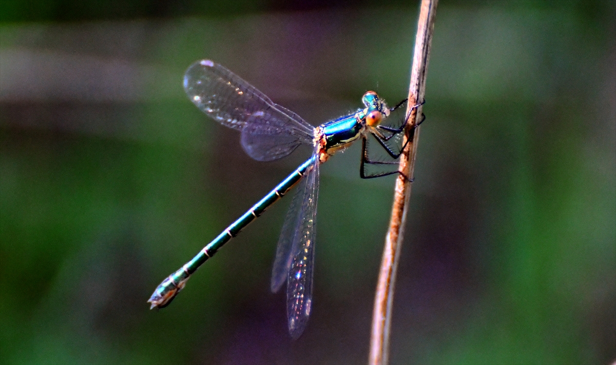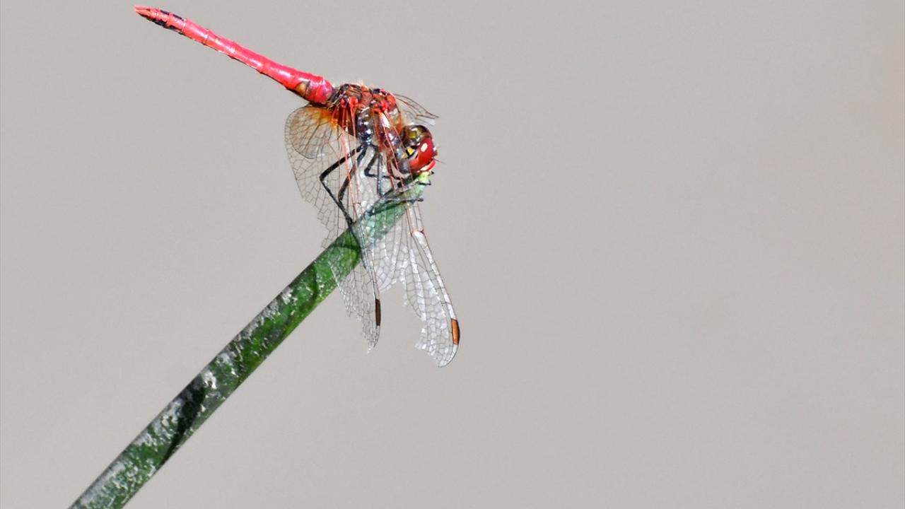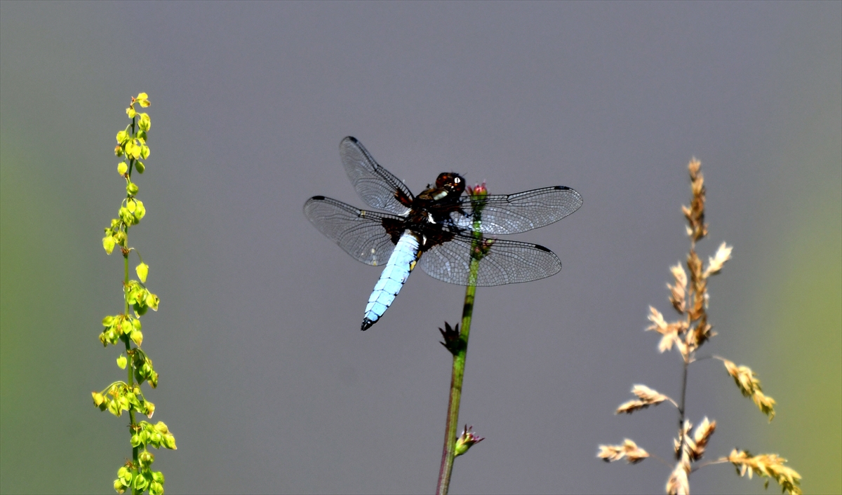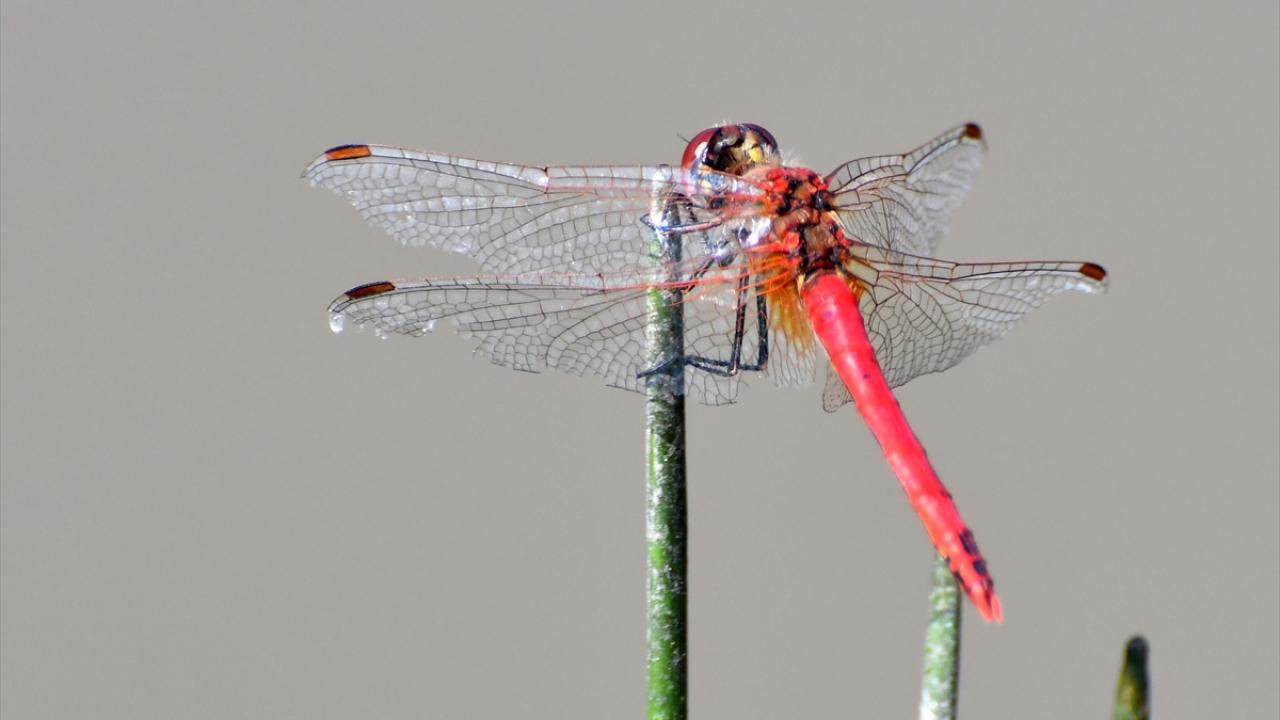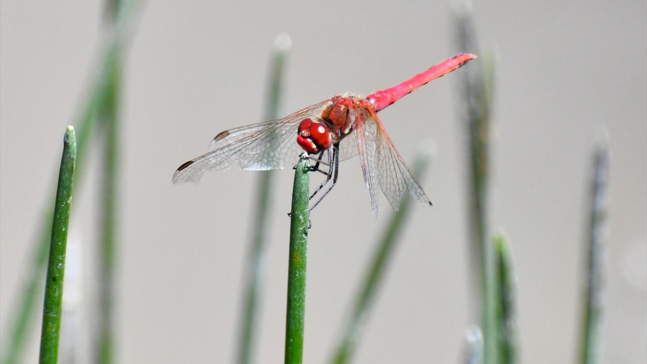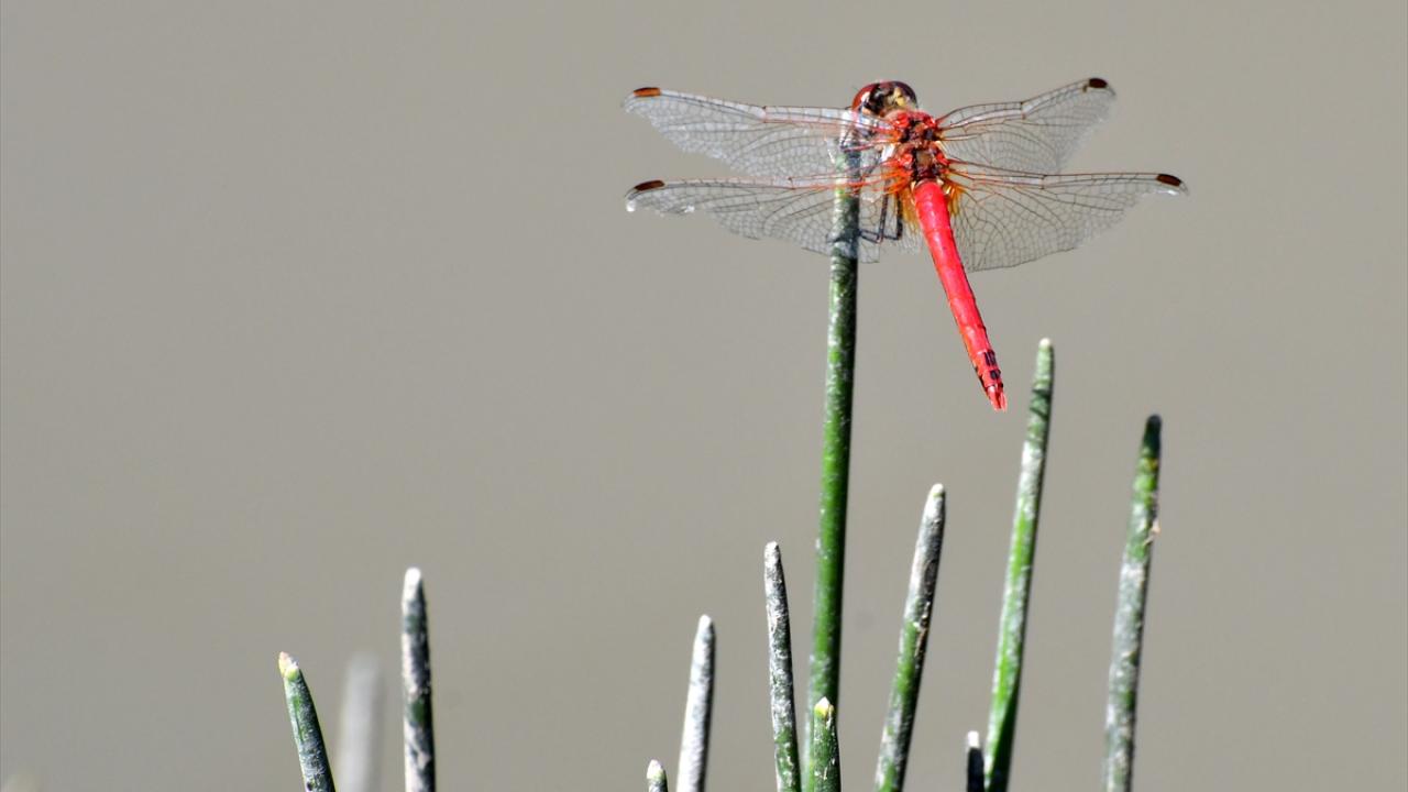 Her yıl bu mevsimde doğada daha çok görülmeye başlanan rengarenk Yusufçuk böcekleri, sulak alandaki bitkiler üzerinde görüntülendi.