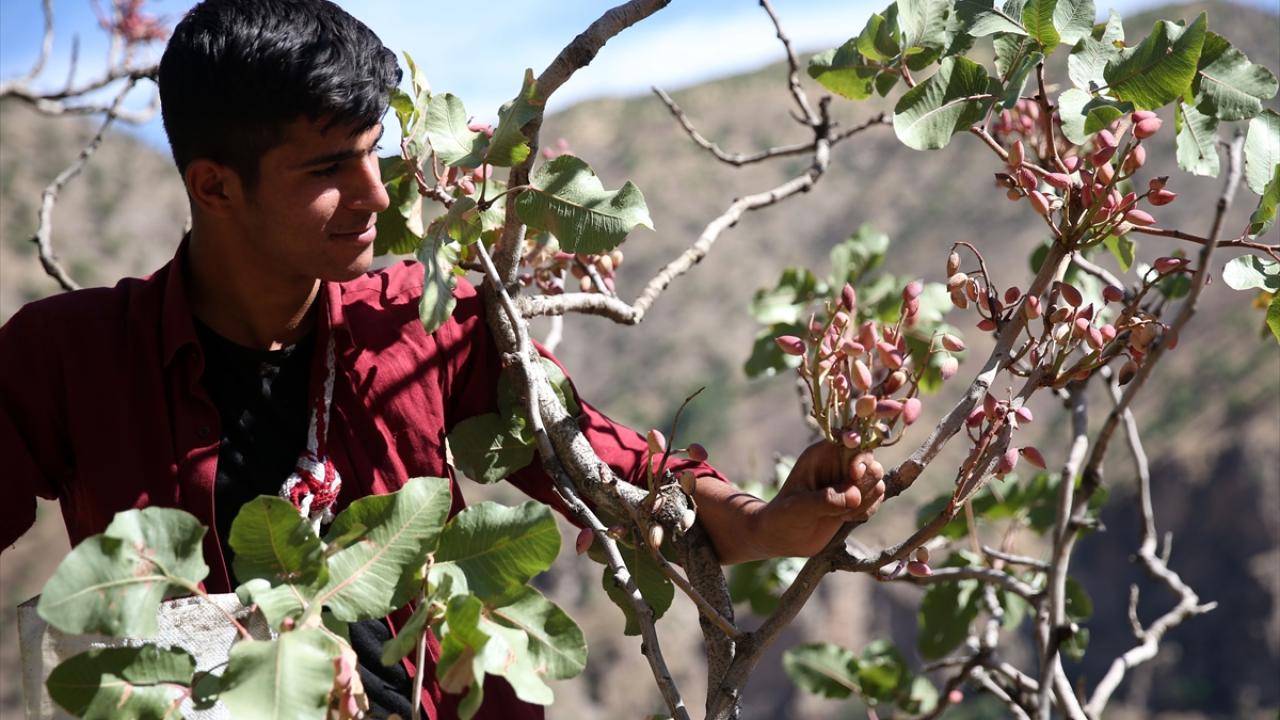 Hizan`ın Nuh köyünde dik yamaçlardaki ağaçlara çıkarak fıstık hasadı yapan gençlerden Sıddık Üzen, fıstığın bölgede köylülerin en önemli gelir kaynaklarından biri haline geldiğini söyledi.