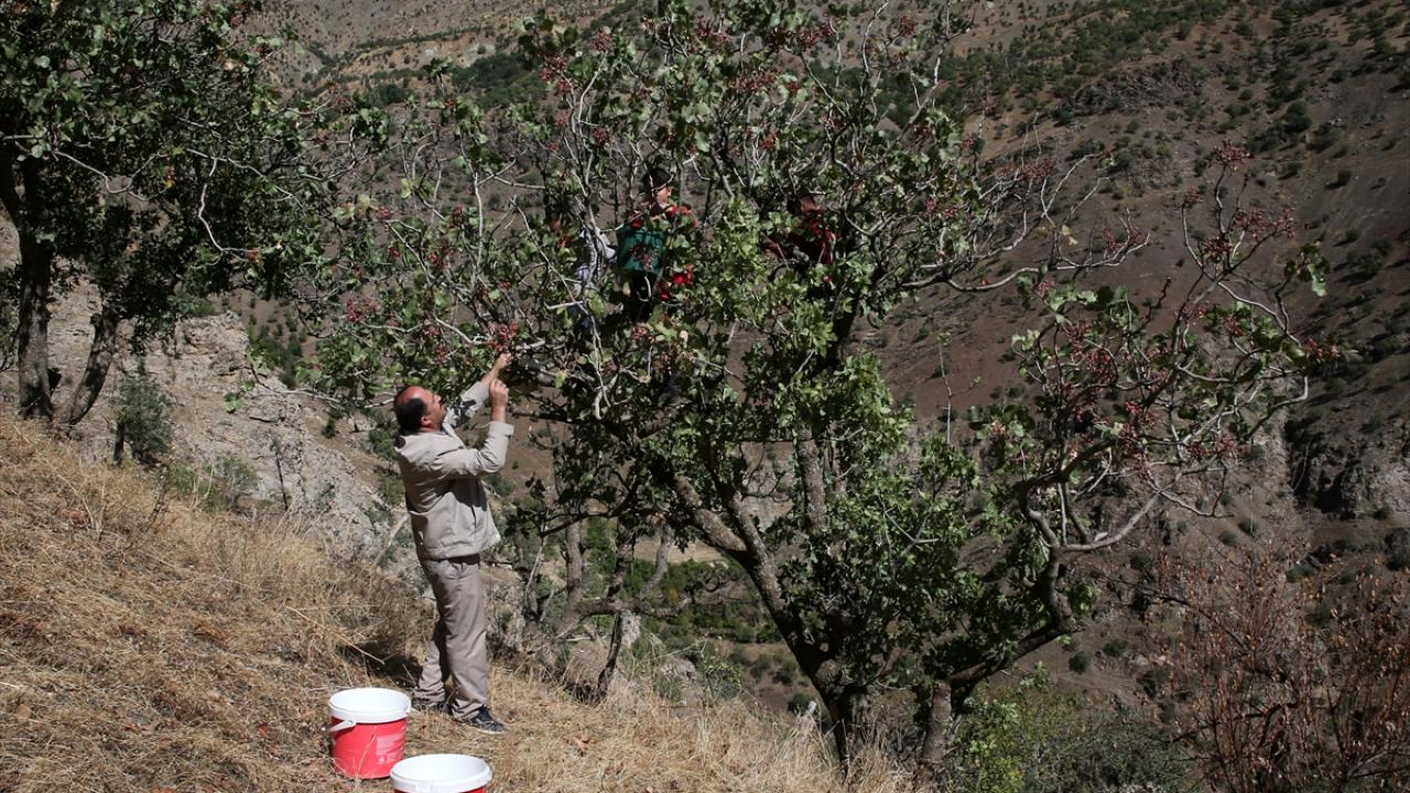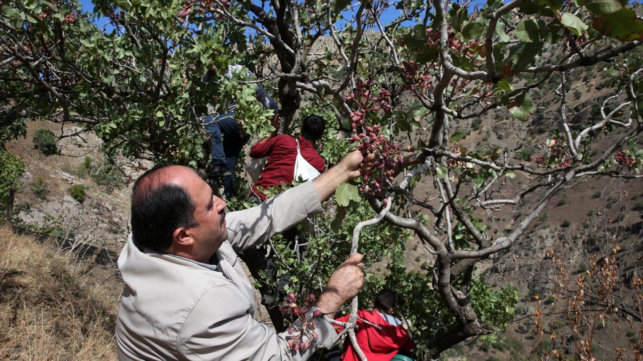 Bitlis'te dağlık alanlarda kendiliğinden yetişen ve ekonomik getirileri olmadığı için Siirt fıstığı aşısı yapılan menengiç ağaçlarından 15 ton fıstık elde edildi.