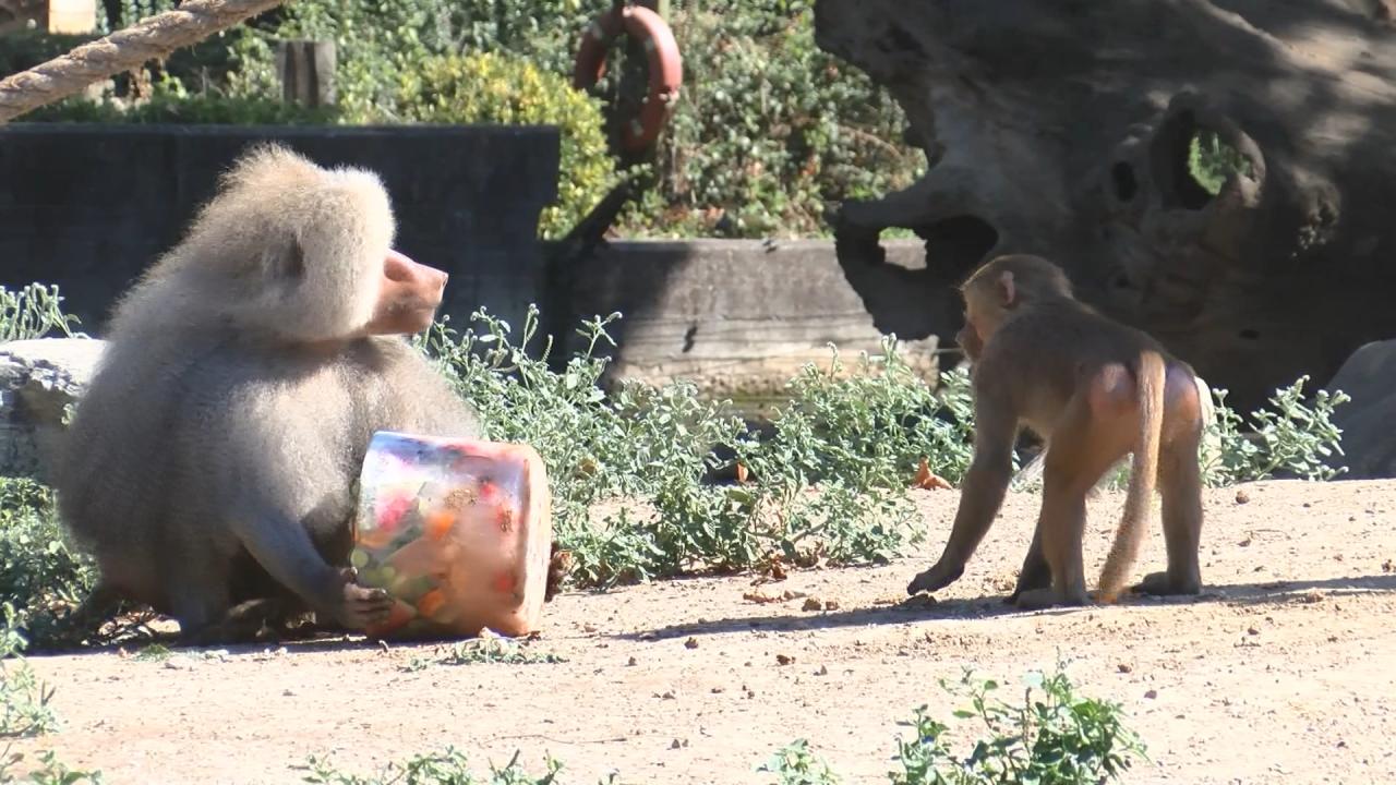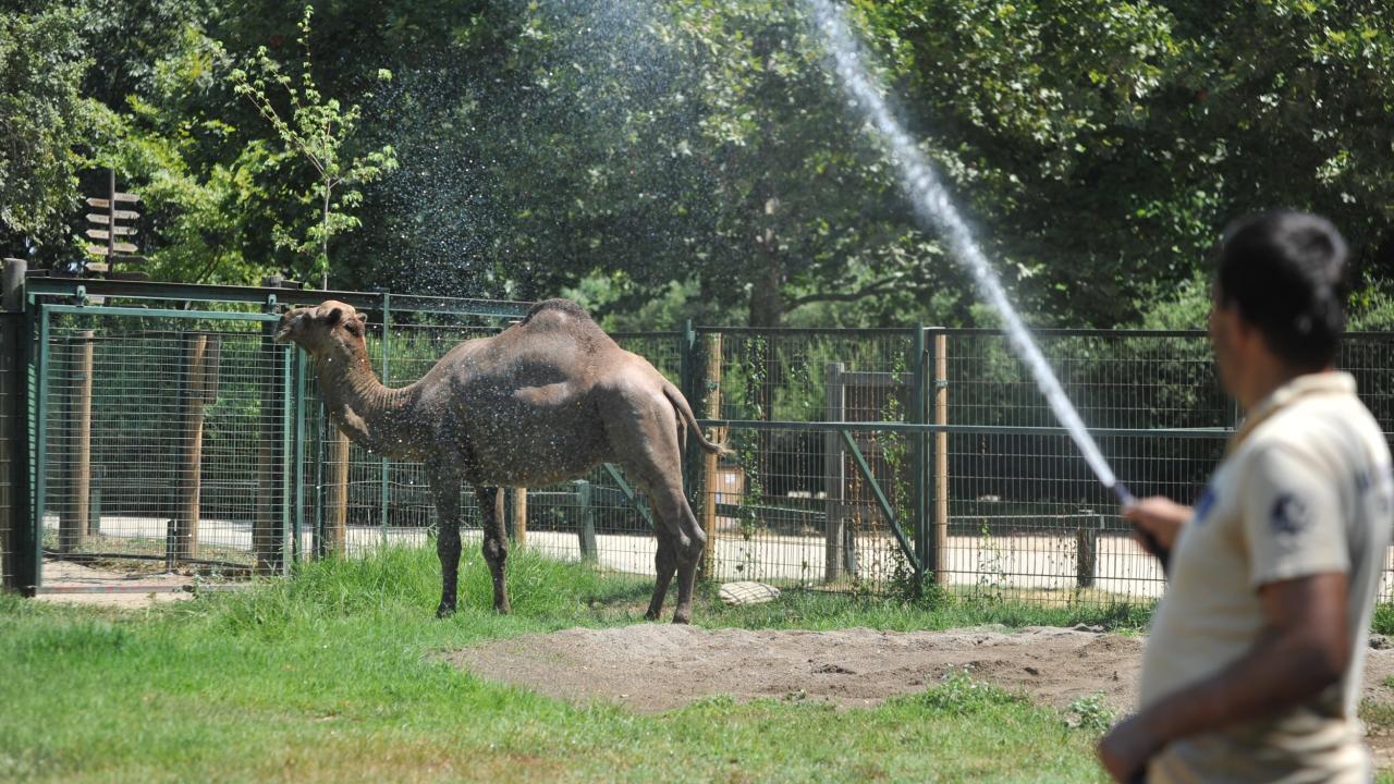 Ancak bakıcıları, sıcakların en üst seviyeye çıktığı saatlerde, hayvanları dondurulmuş meyve kokteyli ile besleyerek serinlemelerine yardımcı oluyor. Hayvanların, bakıcıların verdiği buzlu meyve kokteylleri ile karınlarını doyurarak serinlemeleri, ziyaretçiler tarafından da ilgiyle izleniyor. Sıcaktan etkilenen develer ise bakıcıları tarafından sık sık vücutlarına hortumla su sıkılarak, yağmurlama sistemiyle serinletiliyor.