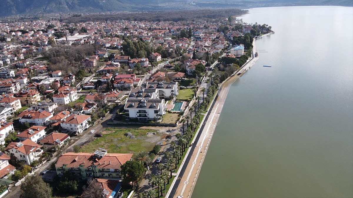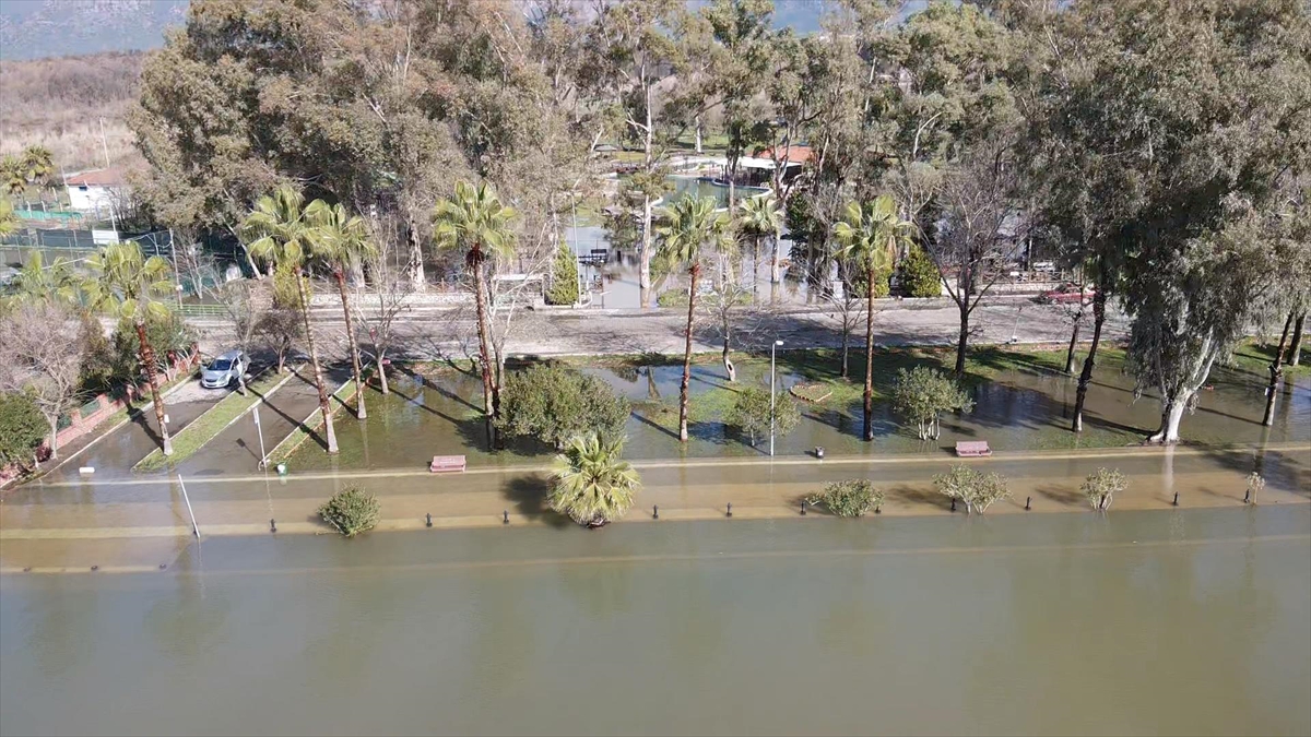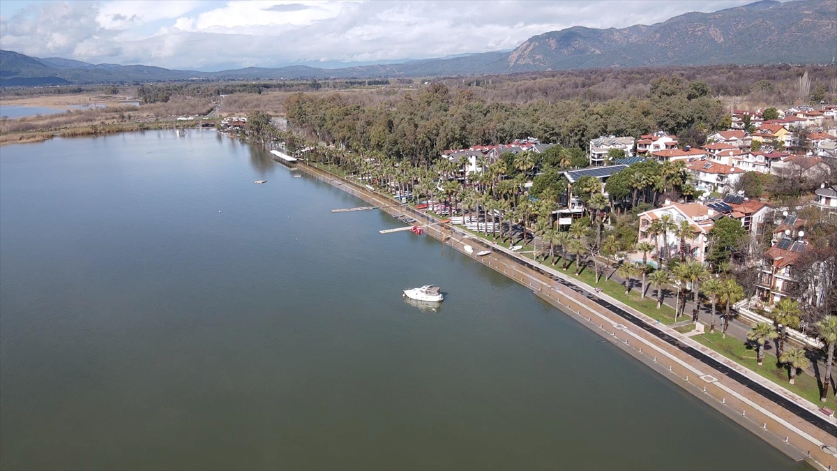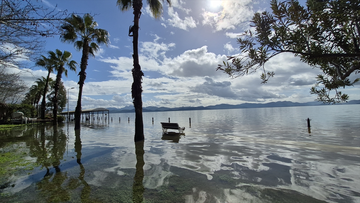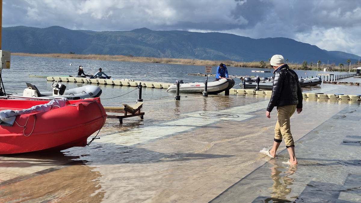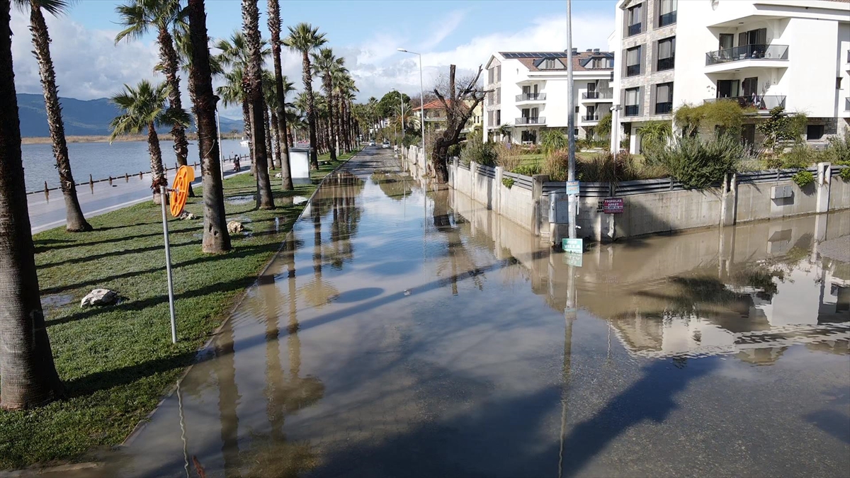 Köyceğiz Gölü`nde su seviyesi, yağışlar ve kuvvetli lodosla birlikte yükseldi.