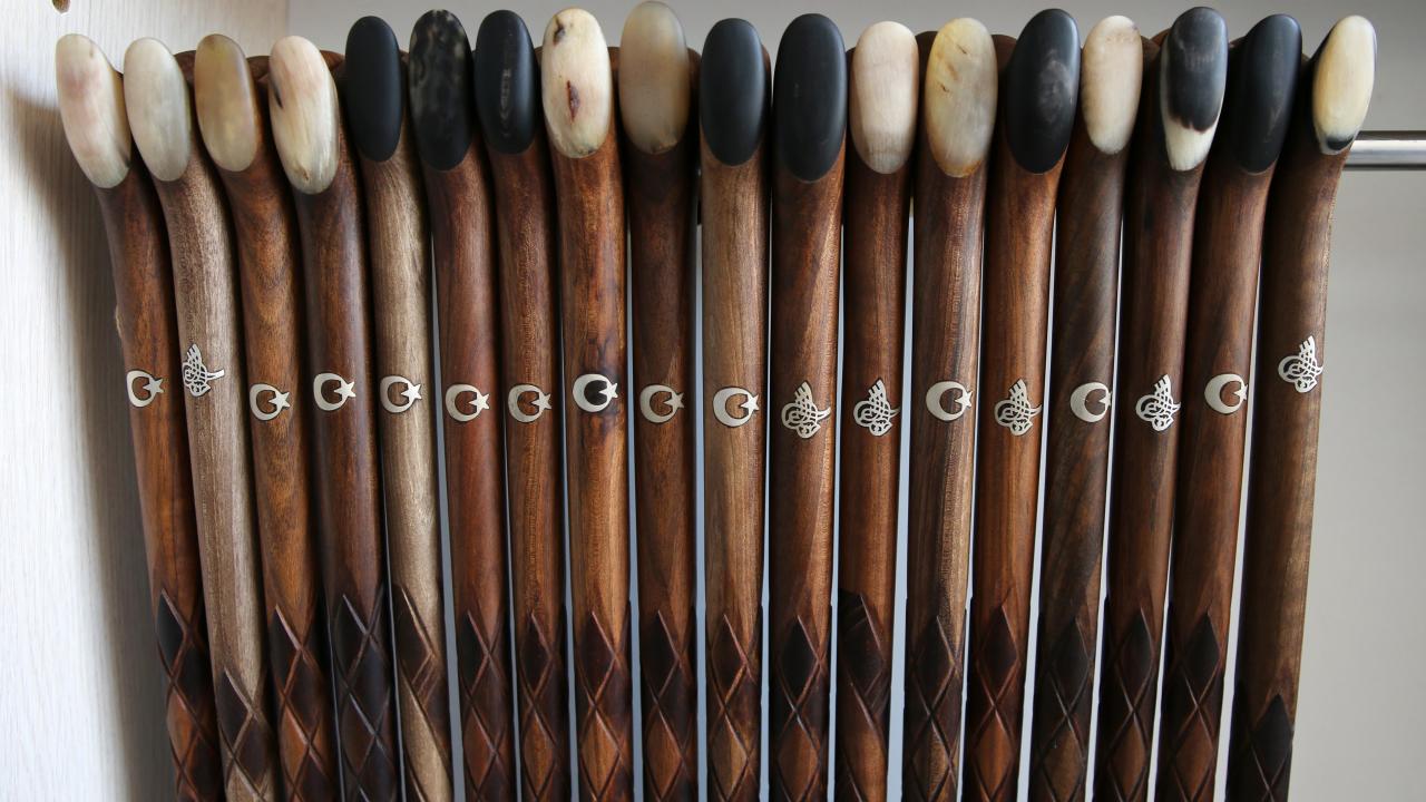 Asırlık ceviz ağaçları zümrüt, yakut ve ebru işlemeli bastonlara dönüşüyor