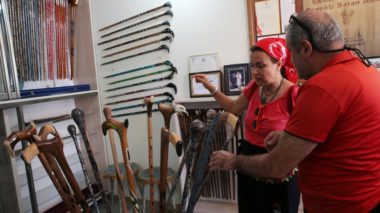 Yaptıkları bastonların yurt içinde ve dışında talep gördüğünü anlatan Birol, "El emeği göz nuru bastonlarımızı altın sarrafı hassasiyetinde üretiyoruz. Her bir milimetre ve santimetresinde büyük emek ve göz nuru var. Yurt içi ve yurt dışına baston satışlarımız devam ediyor." dedi.