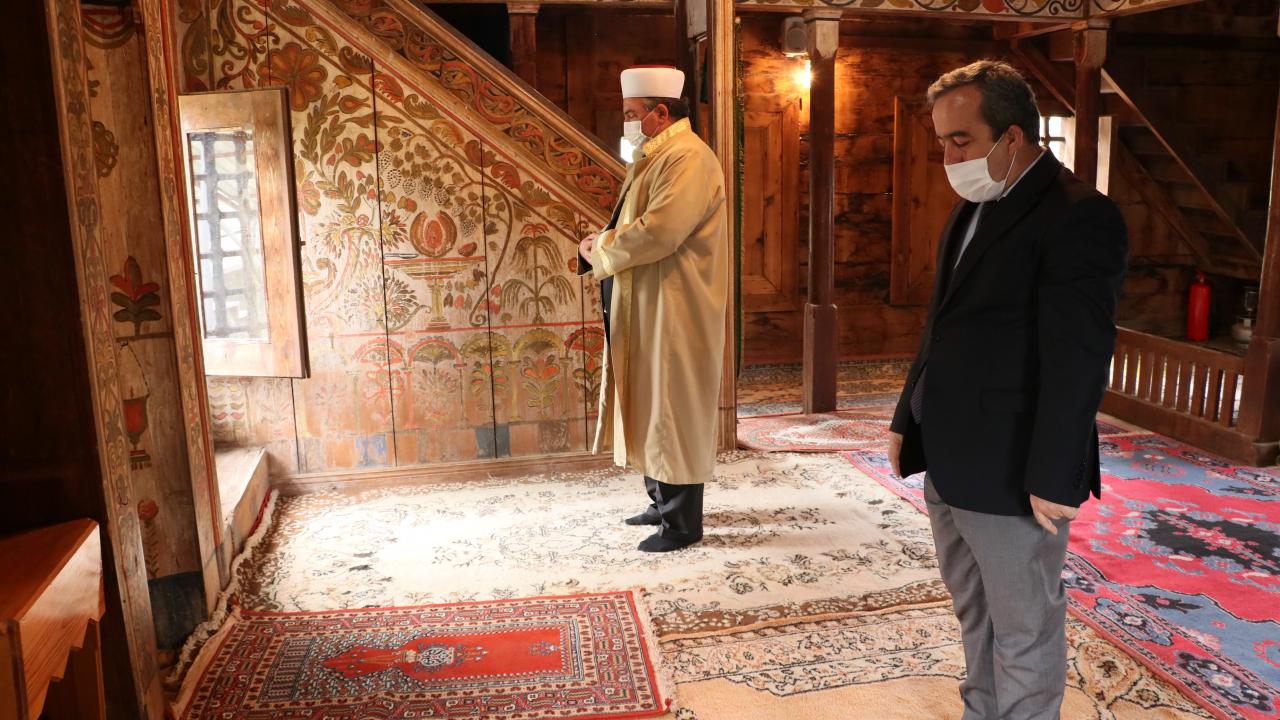 Zaman içinde aynı bahçede yapılan yeni cami ile ahşap camideki görevinin sürdüğünü ifade eden Taşkın, caminin pelit ağacının balta ile yontularak çivi kullanılmadan birbirine girdirme tekniğiyle yapıldığını anlattı.
