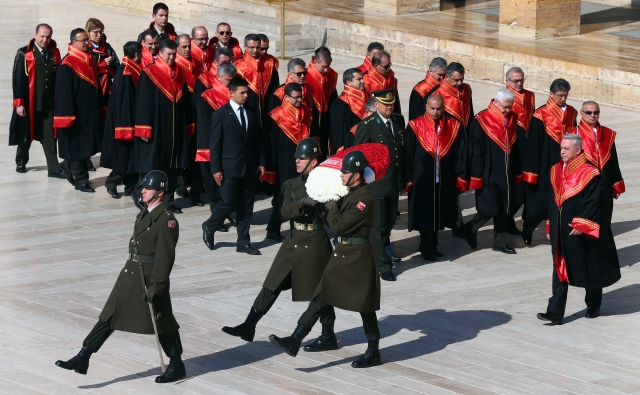 Askeri Yargıtay'ın 103.kuruluş yıl dönümü ve onur günü kutlamaları kapsamında Askeri Yargıtay Başkanı Hakim Tuğamiral Ahmet Zeki Liman ve beraberindeki heyet, Anıtkabir'i ziyaret etti.
