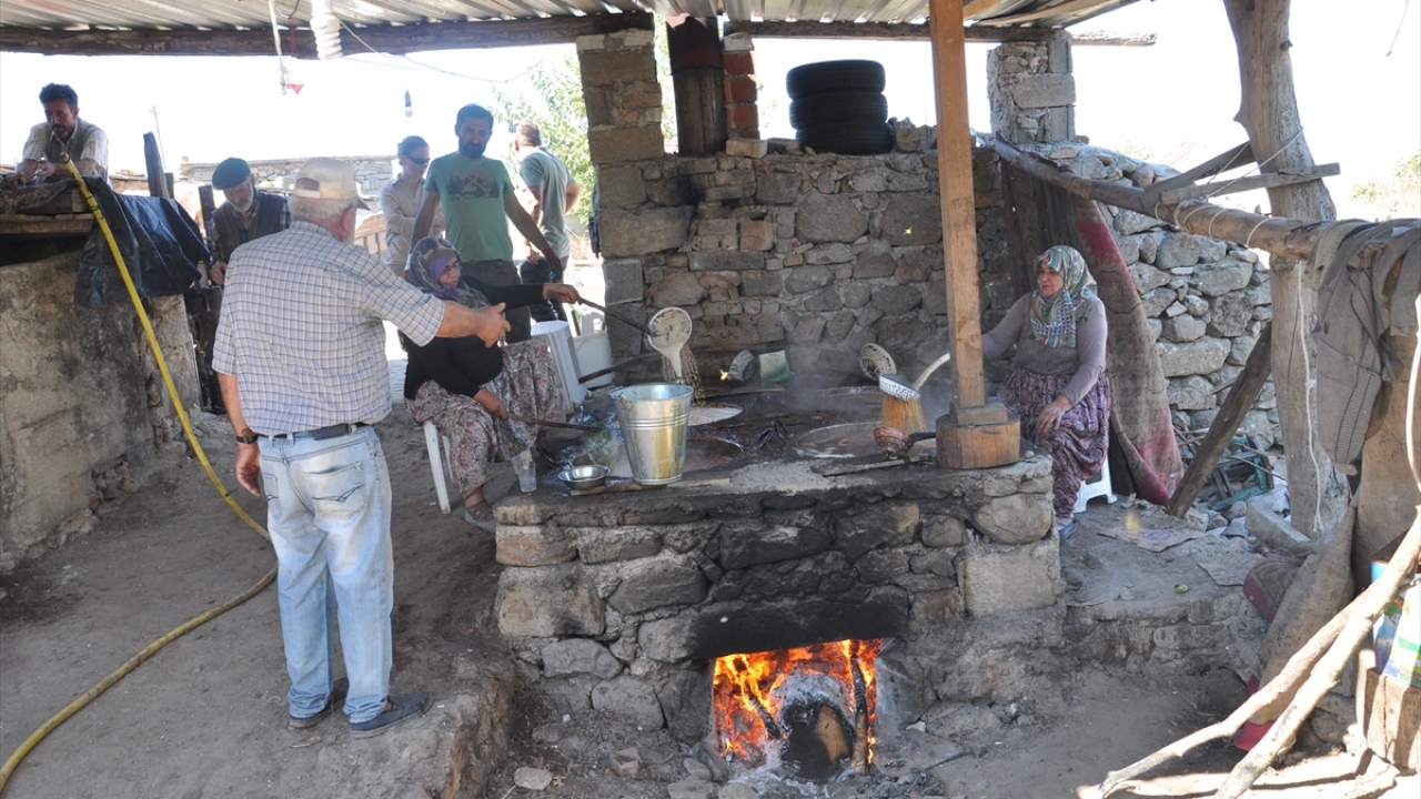 Çanakkale'nin Ezine ilçesinin, kuruluşu 1300'lü yıllara dayanan Yaylacık köyünde hem halkın kışlık ihtiyacı hem de satılarak kazanç sağlamak üzere geleneksel olarak imece usulü sürdürülen pekmez mesaisi başladı.
