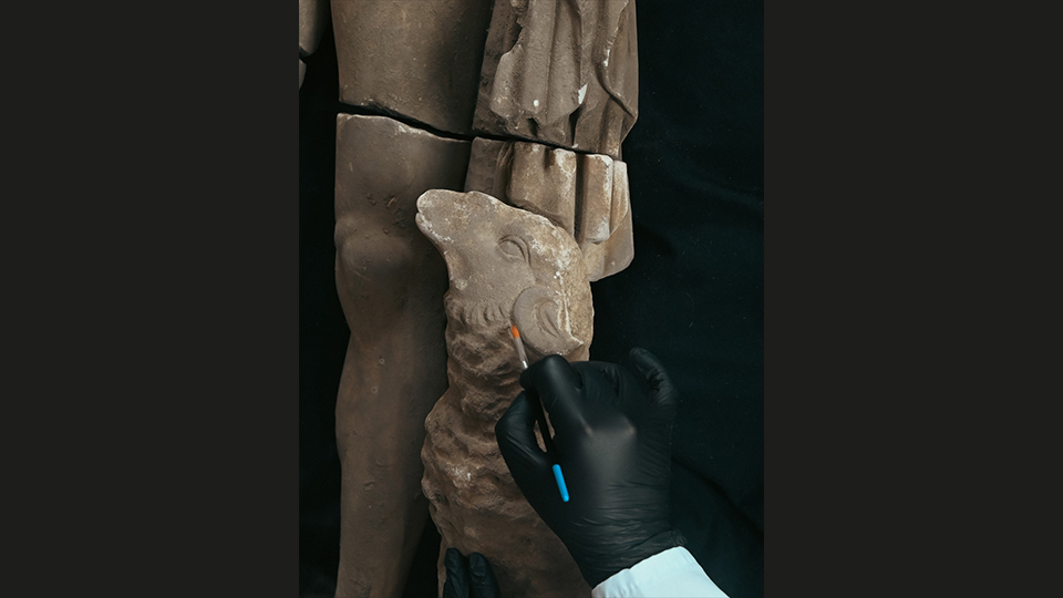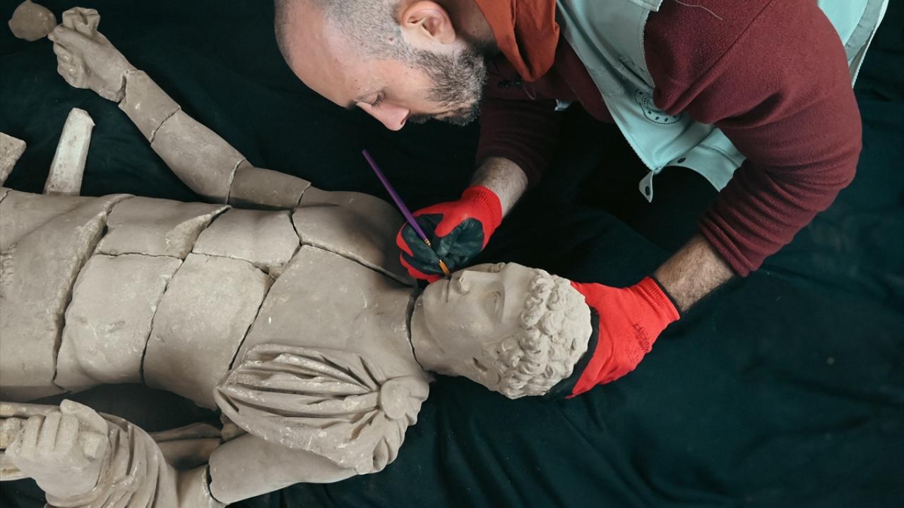 Kazı çalışmalarında parçalı olarak bulunan ve tamamına yakın bölümü gün yüzüne çıkarılan heykel, kazı evi deposunda birleştirilerek bütüncül haliyle değerlendirildi.