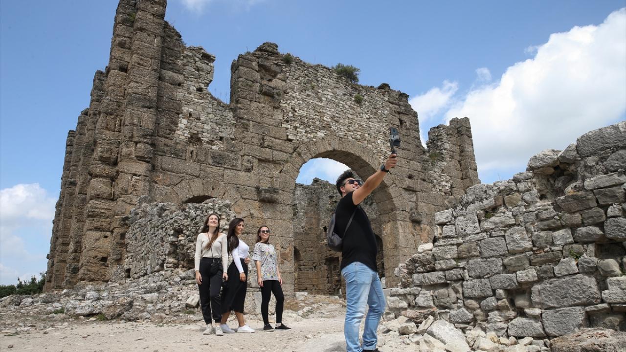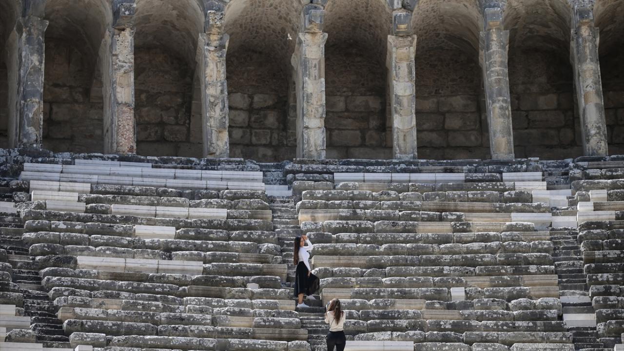Turizm merkezi Antalya`da koronavirüs salgını kapsamında alınan tedbirlerle yerli ve yabancı turistlerin en fazla ziyaret ettiği ören yerlerinin başında gelen antik kent, ihtişamıyla yıllara meydan okuyor.