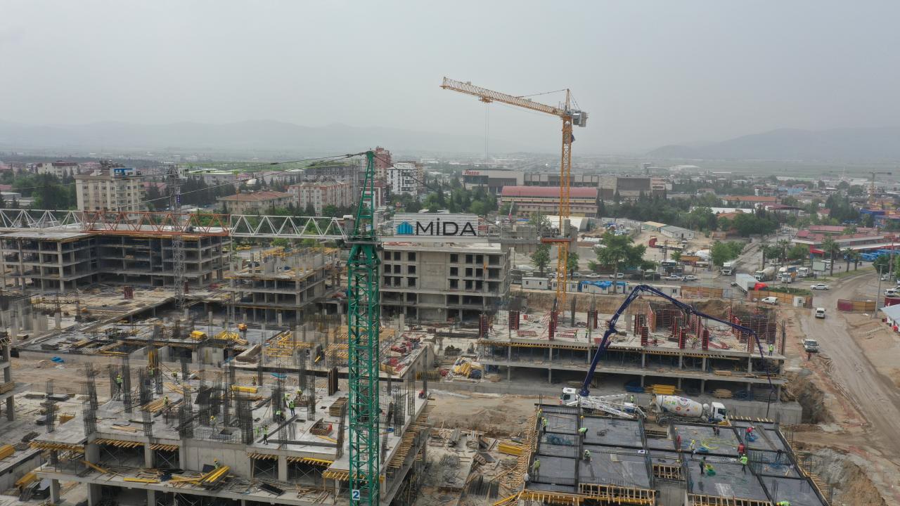 Azerbaycan ile Toplu Konut İdaresi Başkanlığının projesi kapsamında Hayrullah Mahallesi`nde yapımı süren 3 bin 500 konut ile iş yerleri yükselmeye devam ediyor.