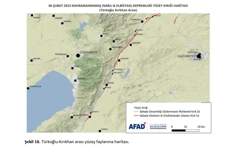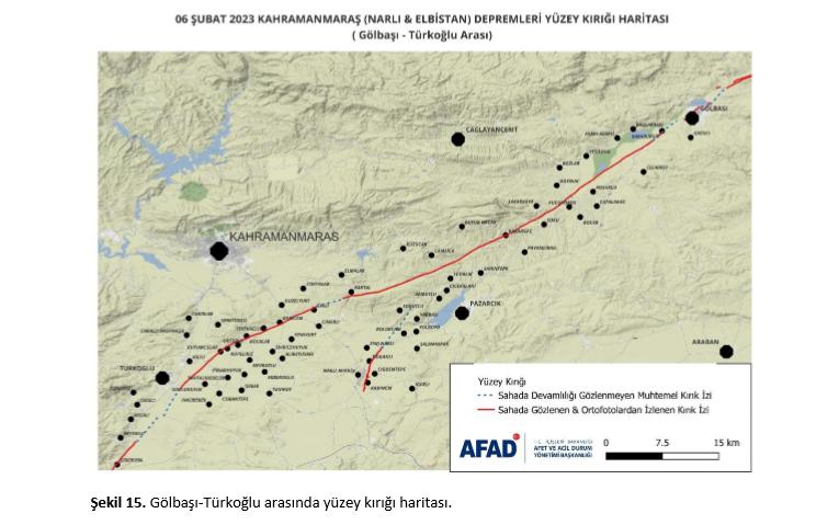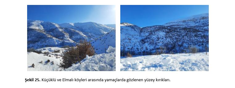 Yaklaşık 65 km uzunluğundaki parçada deprem ile ilişkili gelişen yüzey kırığı en kuzeyde Yeşilyayla Köyü’nden Çelikhan’ın yaklaşık 2 km. doğusuna kadar HGMAtlas uygulaması üzerinden takip edilebildi.