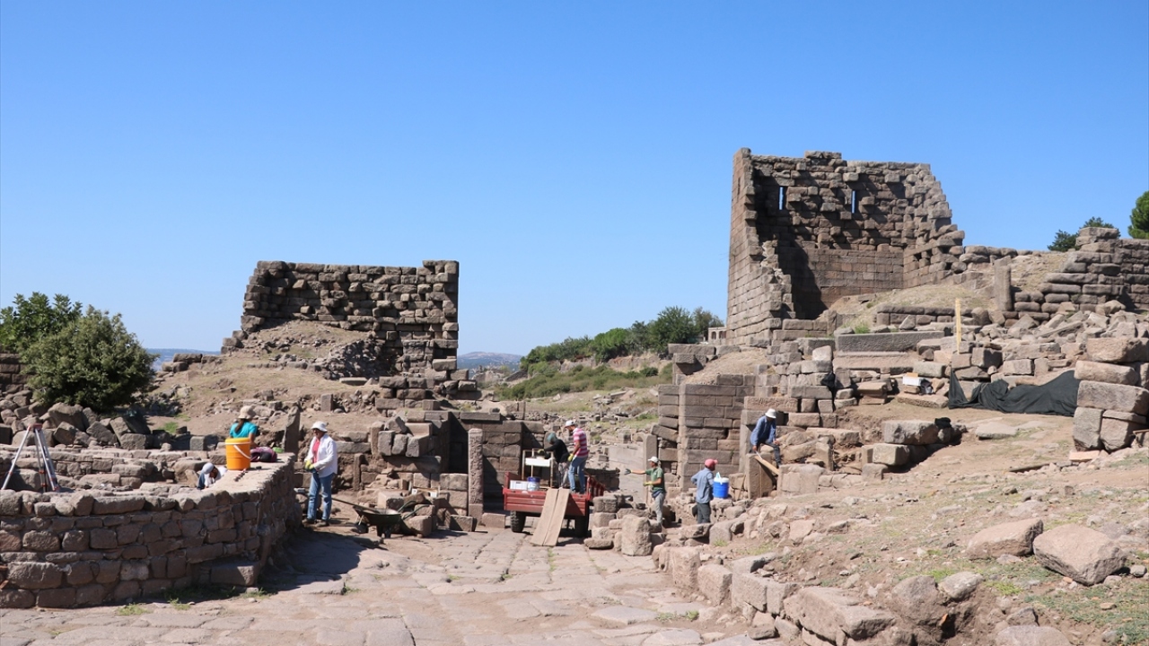 Çanakkale'nin Ayvacık ilçesindeki Assos Antik Kenti'nde yürütülen kazılarda 1500 yıllık yüzükler ile kemer tokası ve 1600 yıllık kemik kolye ve 7 bin yıl öncesine ait granit baltaya rastlandı.