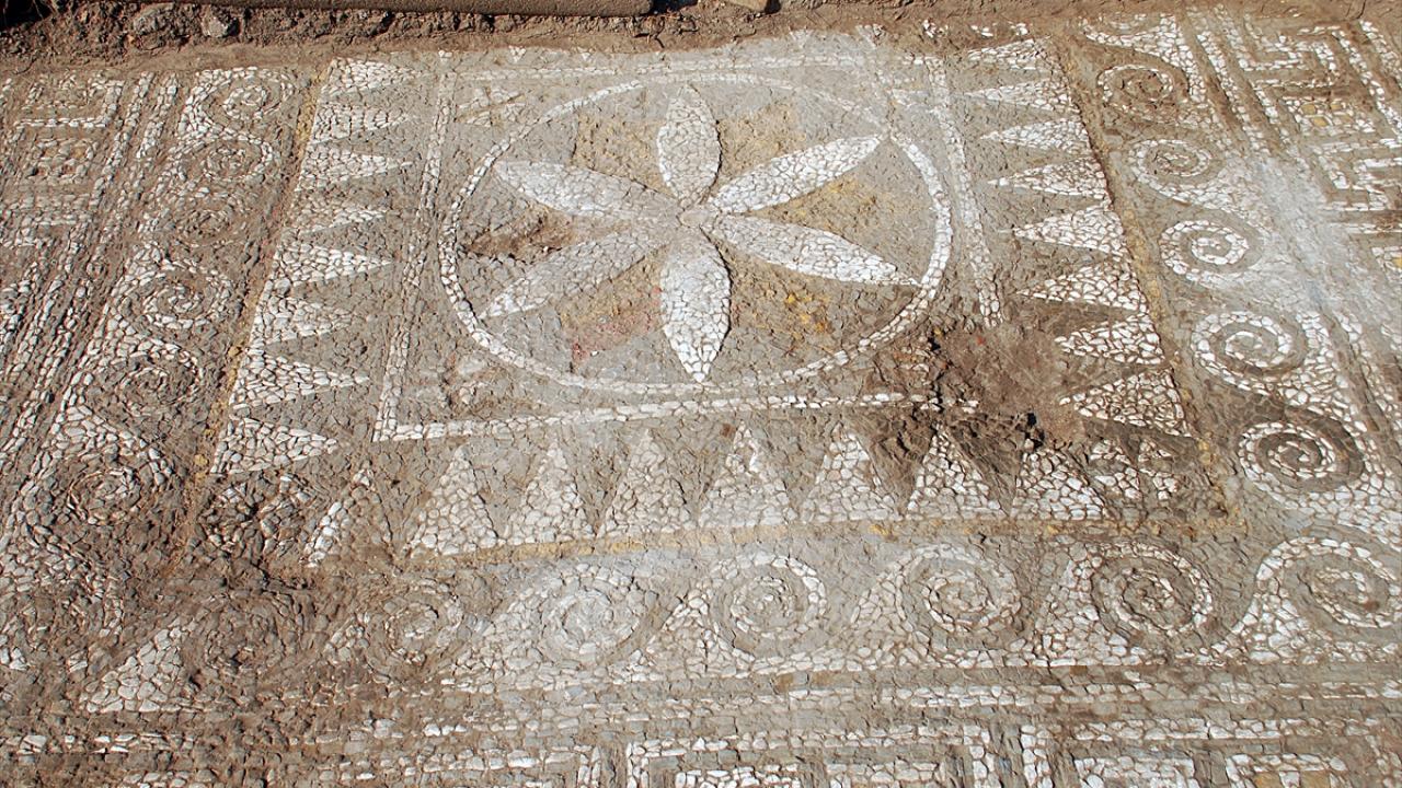 Bunlardan birinin geçen yıllarda başlanan ve halen devam eden batı sur duvarının kenarındaki han yapısı olduğunu belirten Arslan, "Burada da yeni mekanlar ortaya çıkarılmaya devam ediliyor fakat bunun dışında özellikle Kültür ve Turizm Bakanlığımızca başlatılan `Geleceğe Miras Projesi` kapsamında sergilenmesi düşünülen ve bir parçası gün yüzüne çıkarılmış olan mozaikli yapıda çalışmalar tamamlandı. Kazılar sonrasında Helenistik döneme ait olan mozaiğin tamamen sağlam olarak günümüze kadar korunduğunu gördük. Mozaik, çokgen taşlarla yapılmış, polygonal (çokgen) adını verdiğimiz taşlarla üç renkli bitkisel ve geometrik motiflerden oluşuyor." diye konuştu.