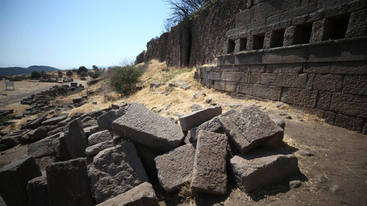 Arslan, eğimli bir arazi yapısına sahip alanda dönemin mimarlarının, özel bir mimari yöntemle daha büyük mekanlar elde etme yoluna gittiğini belirlediklerini dile getirerek, "Bu da kimin yaptırdığını bilmesek de 110 metre uzunluğunda iki katlı olan kuzey stoasında Bergama krallarının Helenistik dönemde inşa ettirdiği tipik özgün yapılardan biri." diye konuştu.