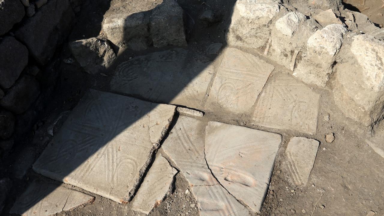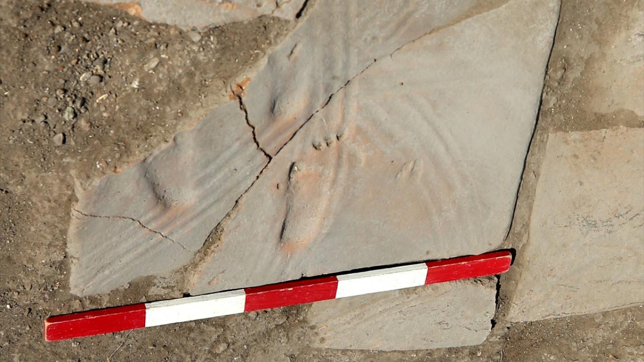 Antik kentte bir evin kalıntılarında, ekmek pişirmek için yapıldığını tahmin ettikleri bir ocağa rastladıklarını anlatan Arslan, "Ocağın zemininde kullanılan pişmiş toprak tuğlalar üzerinde bezemeler var. Fakat bu bezemeler dışında da tahminen 1-1,5 yaşında, yeni yürümeye başlamış bir çocuğun 2 adım atarak bırakmış olduğu ayak izleri var. Bunun yanında köpek ya da bir kedinin izi var" dedi.