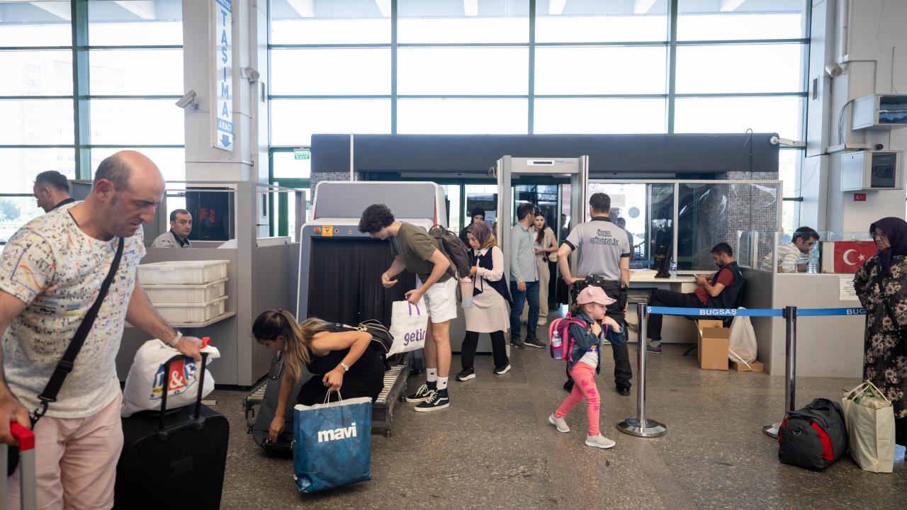 Vatandaşlar, üst araması ve valiz kontrolü yapılarak terminale alınıyor.