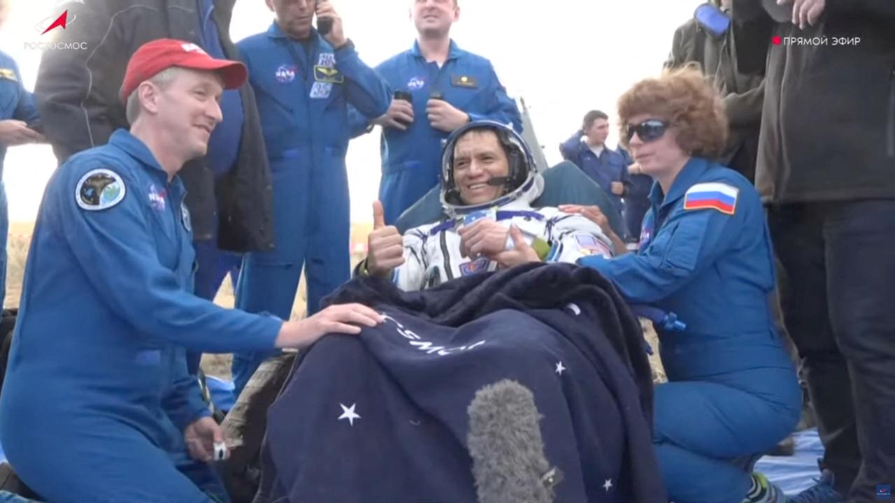 İnişin güvenli şekilde tamamlanmasının ardından kurtarma ekipleri bölgeye gidiyor. Uzay aracı kapsülü, gemiye alınarak girişi açılıyor ve astronotlar kapsülden çıkarılıyor.