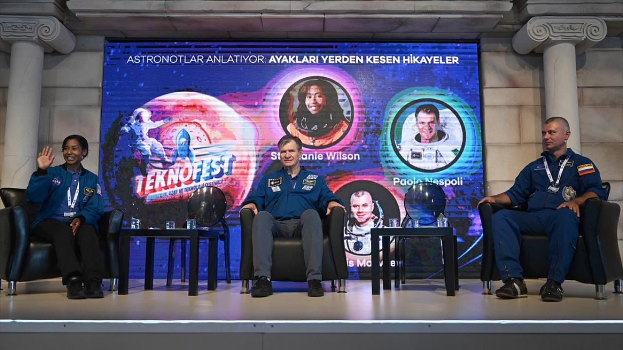 Anadolu Ajansının (AA) 9. kez global iletişim ortağı olduğu, Çiğli Havaalanı`ndaki TEKNOFEST İzmir kapsamında ABD`li astronot Stephanie Wilson, İtalyan astronot Paolo Nespoli ve Rus kozmonot Denis Matveev, "Astronotlar Anlatıyor: Ayakları Yerden Kesen Hikayeler" adlı etkinlikte konuştu.