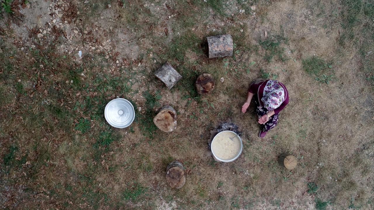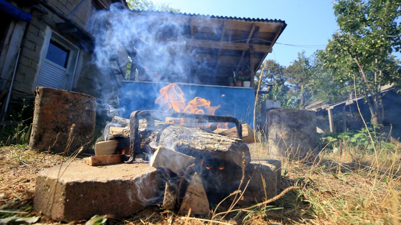 Kırklareli`nde odun ateşi ile yakılan ocakların üzerindeki tencerelerde kaynatılan aşure, bazı köylerde imece usulü yapılıyor.
