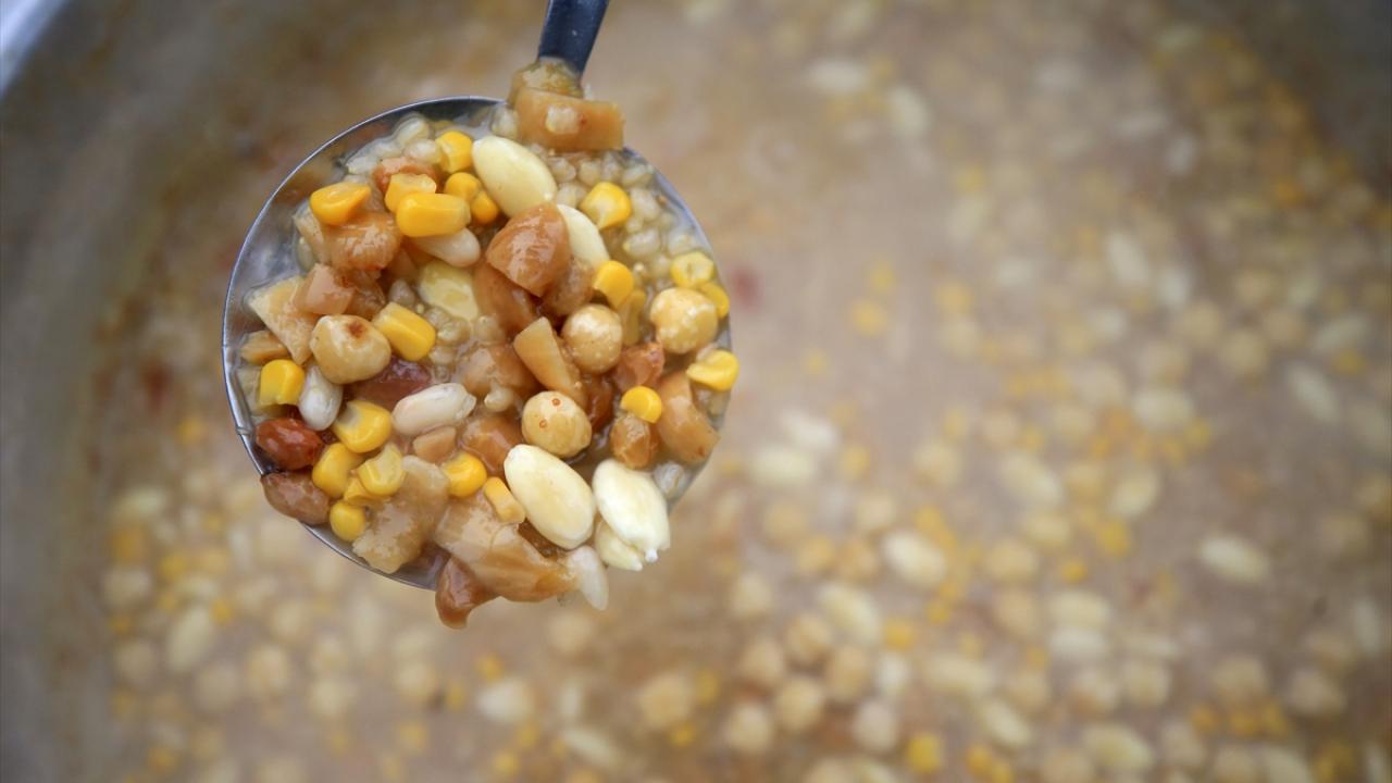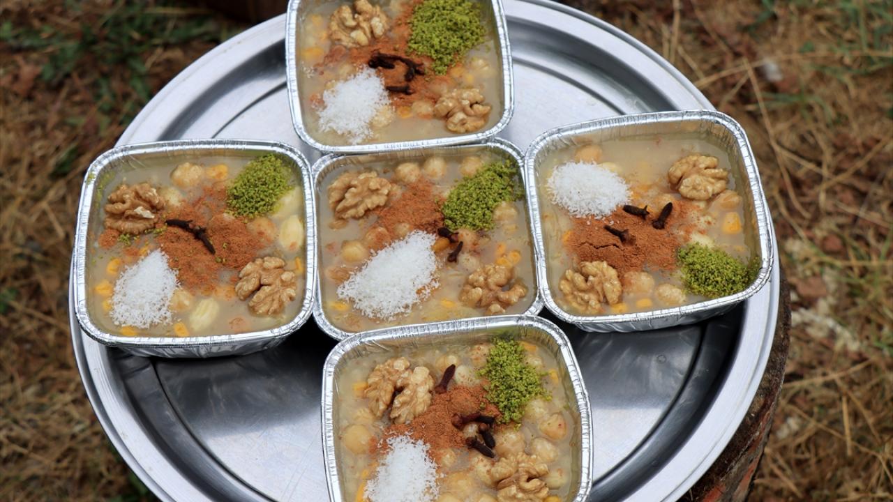 Buğday, nohut, fasulye, incir, tarçın ve şeker gibi 40'a yakın malzemeyle hazırlanan, bolluk ve bereketin simgesi aşure, lezzetini odun ateşinden, bereketini dualardan alarak muharrem ayında sofraları tatlandırıyor.